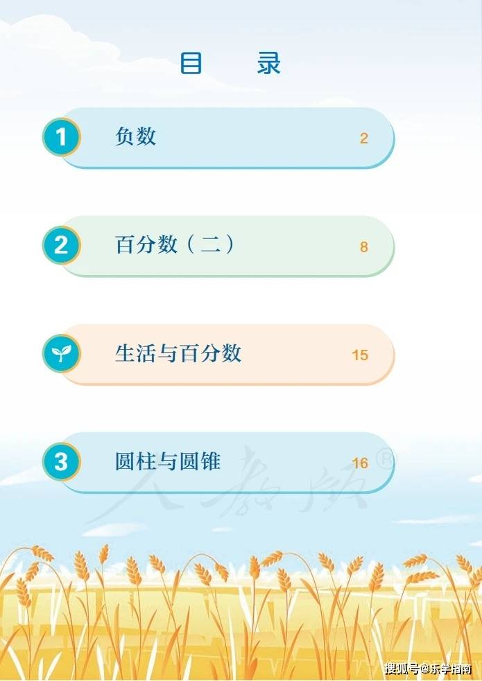 今天为大家分享:人教版六年级下册数学的学习内容,涵盖的核心知识模块包括:一是负数的认识与应用,通过温度、位置等生活场景理解正负数的相反意义,掌握数轴表示数的方法;二是百分数的实际应用,聚焦税率、利率等生活中的百分数问题,学习应纳税额、利息的计算;三是比例、鸽巢问题等拓展内容,同时包含小学阶段数学知识的整理与复习。