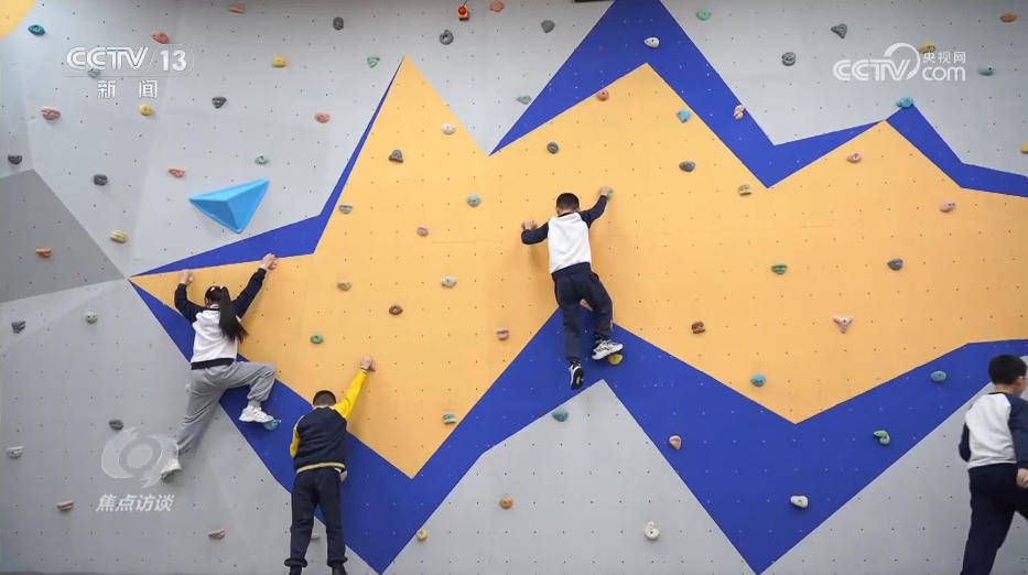 在重庆人民小学,“每天锻炼两小时”已经成为常态。不仅如此,学校还建设了攀岩墙、跑酷和体适能训练区,开发特色体育课程,让孩子们在运动中释放压力、增强自信。在四年级一班的攀岩课上,孩子们专注地寻找下一个攀岩点。对他们来说,这不仅是体能的挑战,更是心理的锻炼。