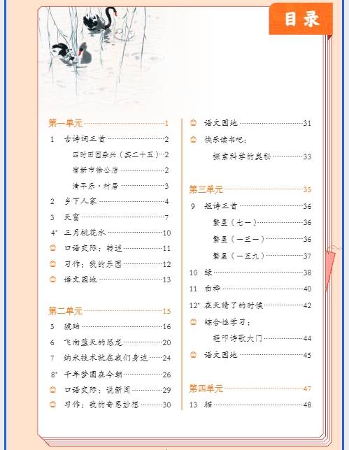 2025年学生将迎来新版教材,新教材将更加重视思维和阅读!为了方便广大学生在暑假预习新学期的课本知识,我们整理了2025新统编版四年级语文(下册)一电子课本,以图片的形式呈现给大家,希望对同学们的暑期学习有所帮助。