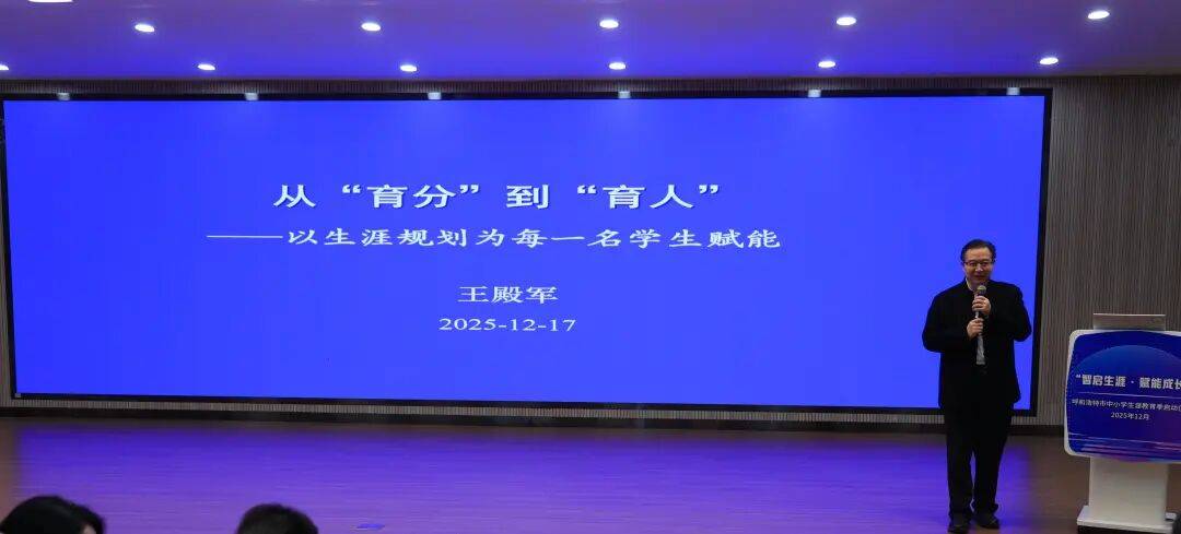 活动最后,清华附中原校长王殿军作《从“育分”到“育人”——以生涯教育为每一名学生赋能》主旨报告,从政策背景、理论建构与实践路径等方面进行了深入阐述,为我市生涯教育的系统推进提供了专业指引。