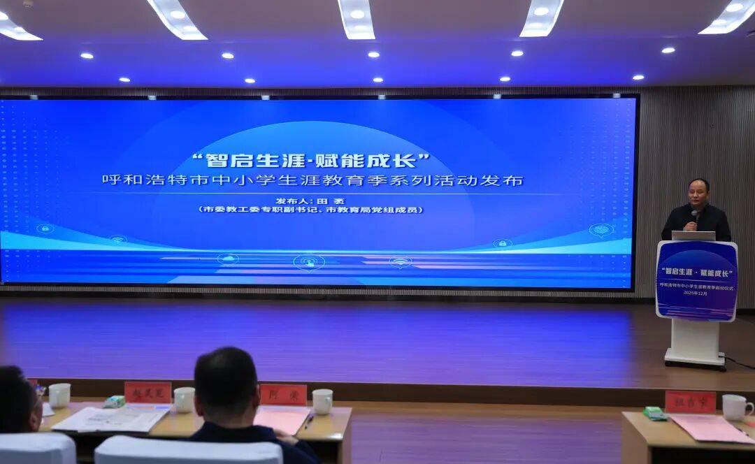 为落实“十四五”规划、前瞻部署“十五五”时期的关键任务,促进学生全面而有个性地成长,连接当下学习与未来发展。2025年12月17日下午,“智启生涯·赋能成长”呼和浩特市中小学生涯教育季启动仪式在我校顺利举办。