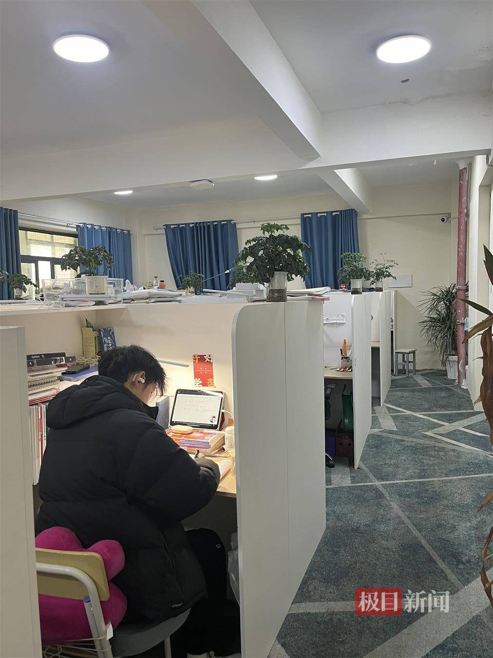 与山里“不打扰”的备考模式不同,这家市区自习室会“主动服务”。中心配备了多名管理员,为学生提供一对一服务,还会组织考勤打卡、定期模考,帮助学生保持备考节奏。