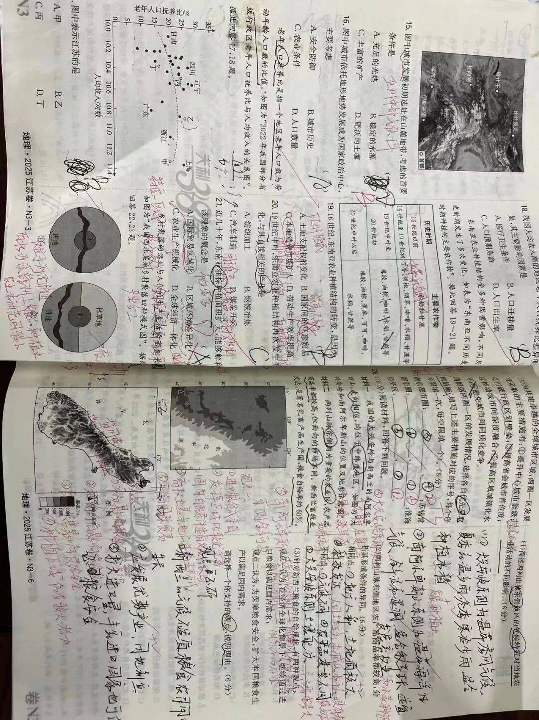 活动心得:做完2025年江苏卷,给我的感受是整体难度平稳,但对综合思维与解决实际问题能力的考查要求显著提升。试题核心围绕四大方向:其一,强化区域比较,超越了特征描述,进行系统性要素与时空成因分析;其二,注重地理过程,考查对现象动态演变的理解与推理;其三,深化信息解读,需从复杂图表情境中提取、关联并转化有效信息;其四,创新实践考查,通过模拟调研、实验设计等任务,评价科学探究与迁移应用能力。
