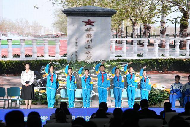 课堂以学生身边的红色地标为情感起点,在不同环节向不同学段学生侧重。“同学们,在我们五一小学大兴一分校的校园内,长眠着一位永远年轻的烈士,他就是华黎。”老师开场后,参与原创话剧《中华黎明》的学生分享排演心得。“我觉得华黎叔叔是一位伟大的人,他在面对死亡的威胁时依然高呼‘中国共产党万岁’,他真是位大英雄!”一位男生说。“华黎叔叔,您用生命铺就的这条路开满了鲜花……我会珍惜您用生命换来的和平,努力学习,报效祖国!”稚嫩的声音充满坚定。