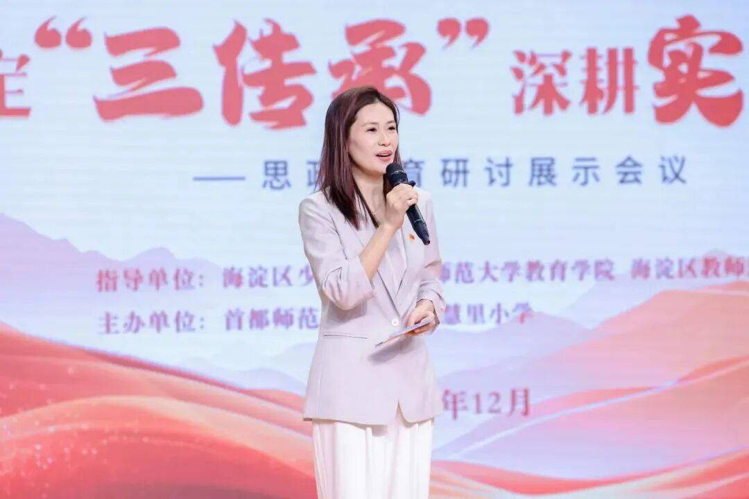 首师大附属定慧里小学书记、校长李春在致辞中表示,思政教育是“培根铸魂”的工程,关乎学生的成长底色与未来发展。学校倾力构建起全方位、多维度的“思政实践场”——以课堂思政教育为核心抓手,深挖学科教学中的红色元素;聚焦“三传承”核心内涵,将文化浸润与价值引领融入日常教学的点滴;积极推进“校家社”协同育人模式,让思政教育走出课堂、走进生活,真正实现春风化雨、润物无声的育人实效。