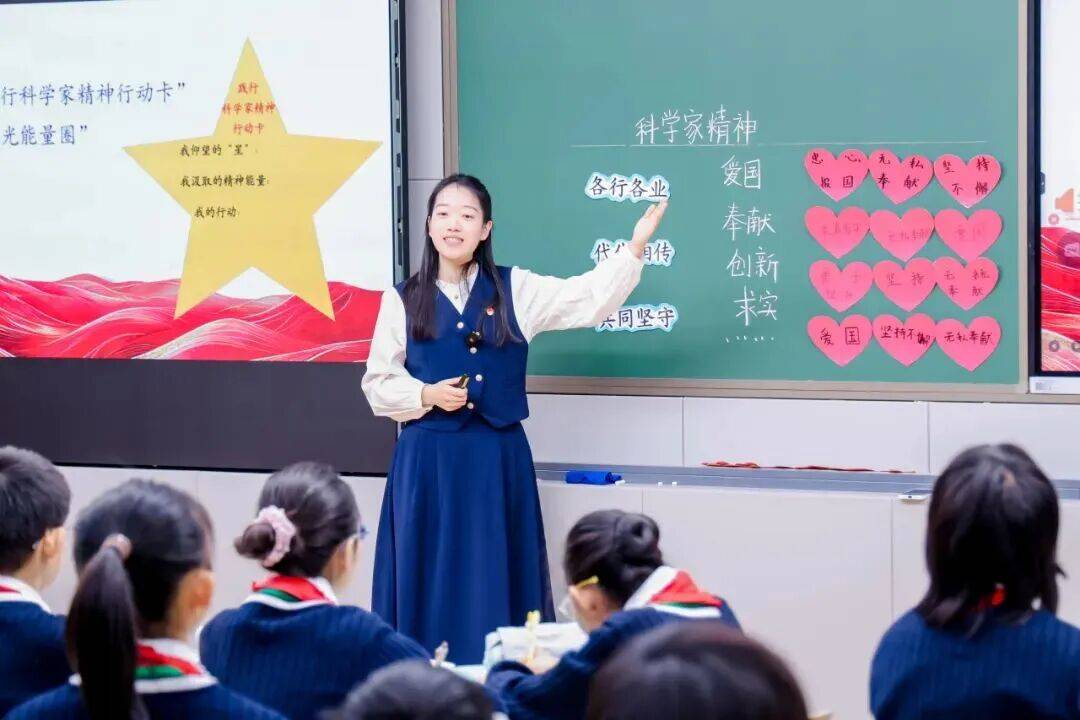 在道德与法治课《笃行科学家精神》中,学生通过“少年追光”活动感悟奋斗价值;