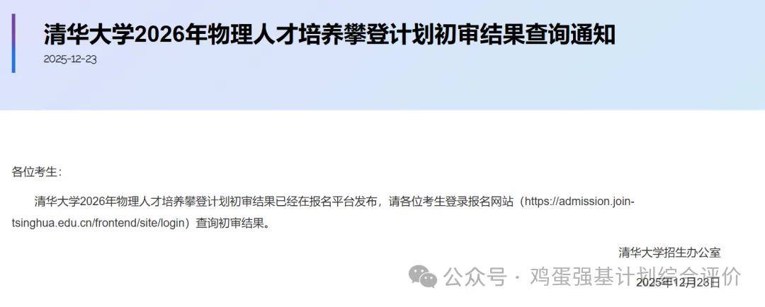 清华物理攀登计划初审结果公布