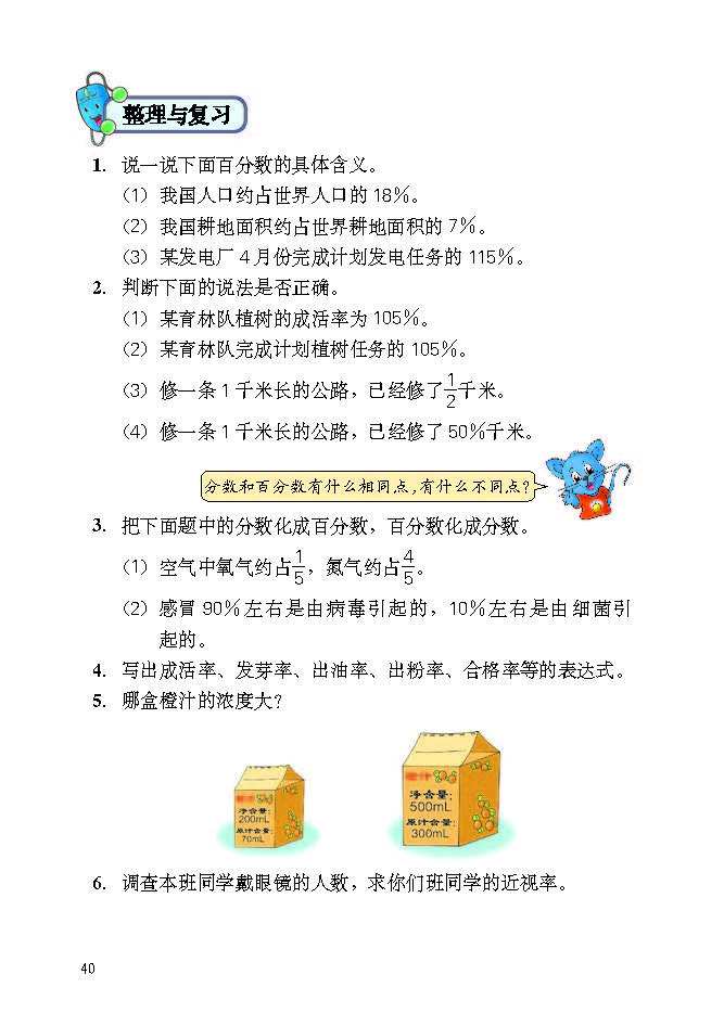 本教材依据新课标编写,共8个核心单元,融合“数与代数”“图形与几何”“统计与概率”“综合与实践”四大领域,衔接小学与初中知识,助力六年级学生深化数学素养、提升应用能力。 单元内容紧扣生活与探究:1. 圆和扇形,认识圆与扇形特征、用圆规作图,培养几何直观;2. 比和比例,掌握比与比例性质、按比例分配,通过“测量旗杆高度”实践应用;3. 百分数,学习意义、读写及与分数/小数互化;4. 圆的周长和面积,推导公式并解决实际计算问题;5. 百分数的应用,聚焦折扣、成数、税收、储蓄等生活场景,搭配“学会理财”实践;6. 比例尺,理解含义并解决图上与实际距离换算;7. 扇形统计图,学习数据整理与分析;8. 探索乐园,综合运用知识锻炼思维。 教材突出探究性,以动手操作、小组讨论引导知识构建;强化生活关联,渗透初中衔接要点,设置整理与评价模块,帮助学生梳理体系,形成数学思维与应用能力。