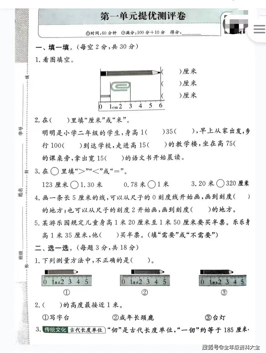 兼顾应试提分与思维培育,筑牢进阶根基。对于二年级孩子而言,长度测量学习既要稳稳拿下基础分值,更要培养核心量感思维。这份资料包精准兼顾双重目标:“统一测量单位的判断、规范测量步骤的掌握”,帮孩子牢牢守住基础得分点;“不同物品测量同一物体的对比分析、测量结果的逻辑推理”,能有效训练逻辑思维与量感认知,为三年级厘米与米的换算学习筑牢根基。此外,资料包融入“黄果树瀑布长度”等生活化情境,还能潜移默化引导孩子养成“用数学眼光观察生活、用测量知识认知世界”的好习惯,真正实现“短期提分+长期能力成长”的双重收获!