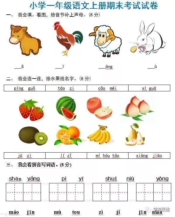 前两期所发1~6年级语文期末测试卷,受到家长朋友的积极收藏和转发,部分家长向我索要一年级的精编答案版,见于此种原因附答案一同上传。希望对孩子的复习带来帮助,为家长的辅导带来便利。