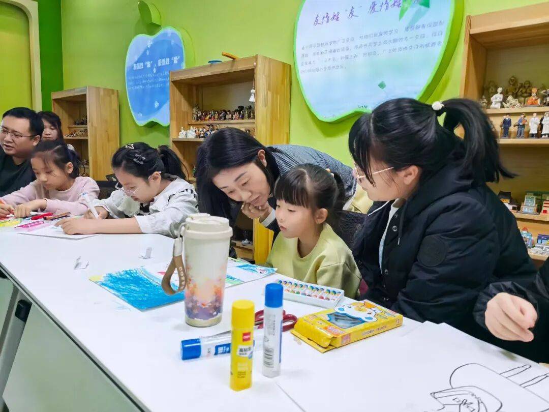 创意涂鸦环节,孩子们用斑斓色彩挥洒情绪,家长们在王琪老师的解读中沉浸式感受孩子绘画中的“心情密码”。