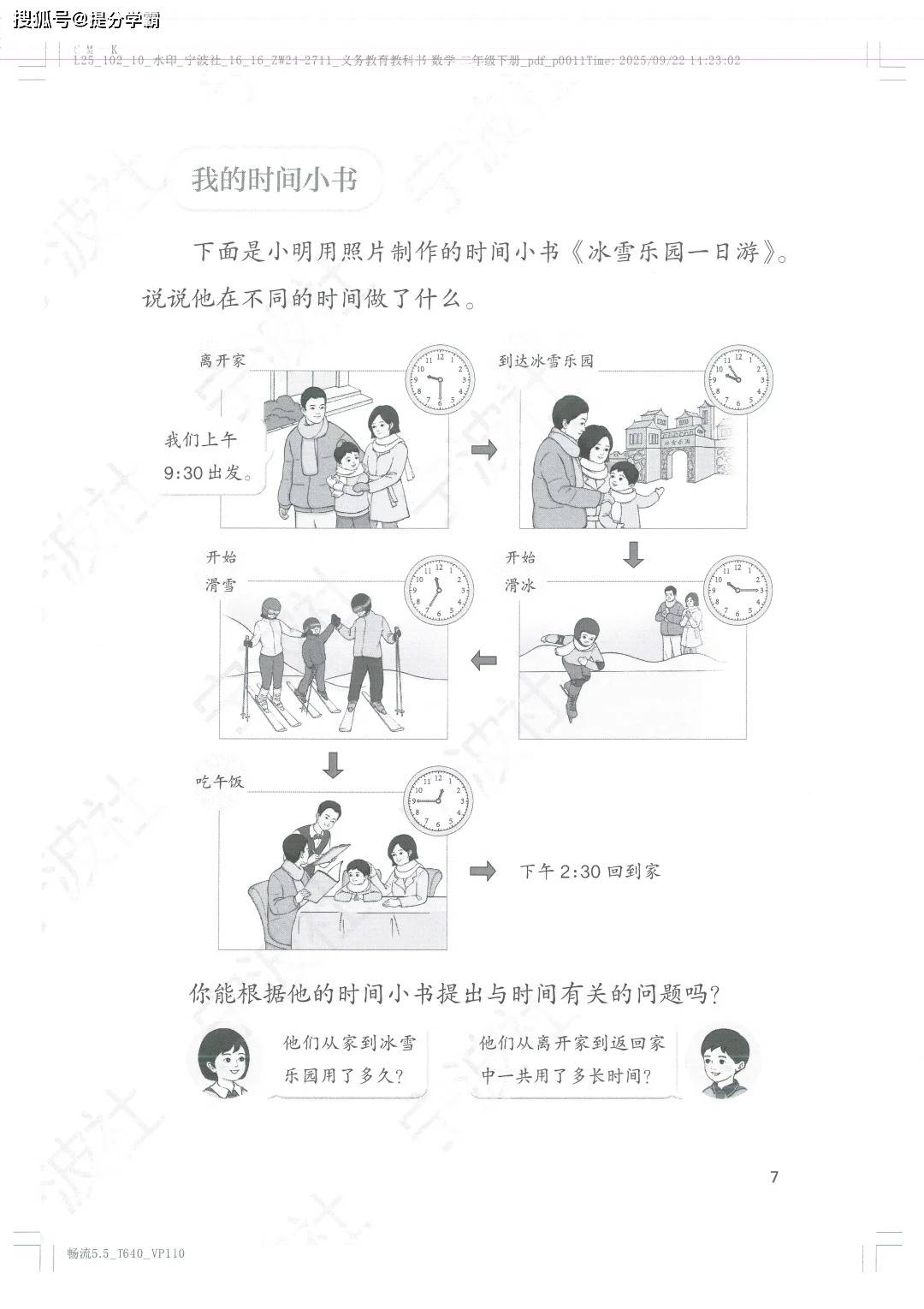 从内容来看,“时间在哪里” 单元完全贴合低年级孩子的认知特点:开篇用 “小云的一天” 串联起昼夜变换与日常作息,先让孩子感知时间的流逝;接着拆解钟面的结构,通过 “认一认” 区分时针、分针、秒针,用 “拨一拨” 理解时、分、秒的换算关系;后续还设计了 “读钟表时间”“1 分钟能做什么” 等实践任务,甚至用 “我的时间小书” 引导孩子记录生活中的时间片段。