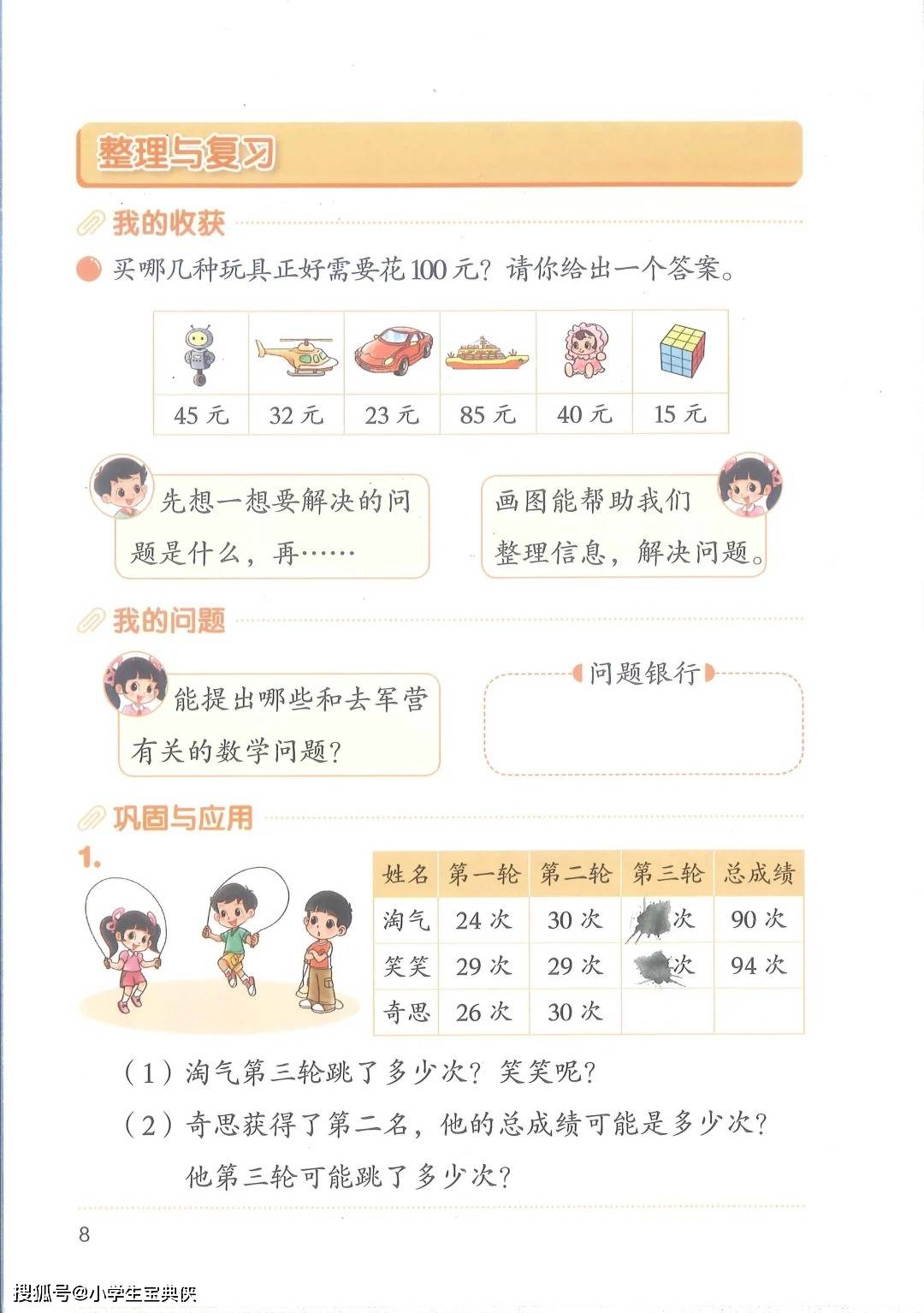 尤其对二年级的孩子来说,数学学习正处于 “从具体到抽象” 的过渡阶段,这本课本用 “套圈得分”“坐船空位” 等生活场景,把抽象运算转化为看得见的问题,既能夯实计算、图形等核心技能,也能慢慢养成 “用数学思维解决问题” 的习惯,为后续更高年级的数学学习打下扎实的基础。