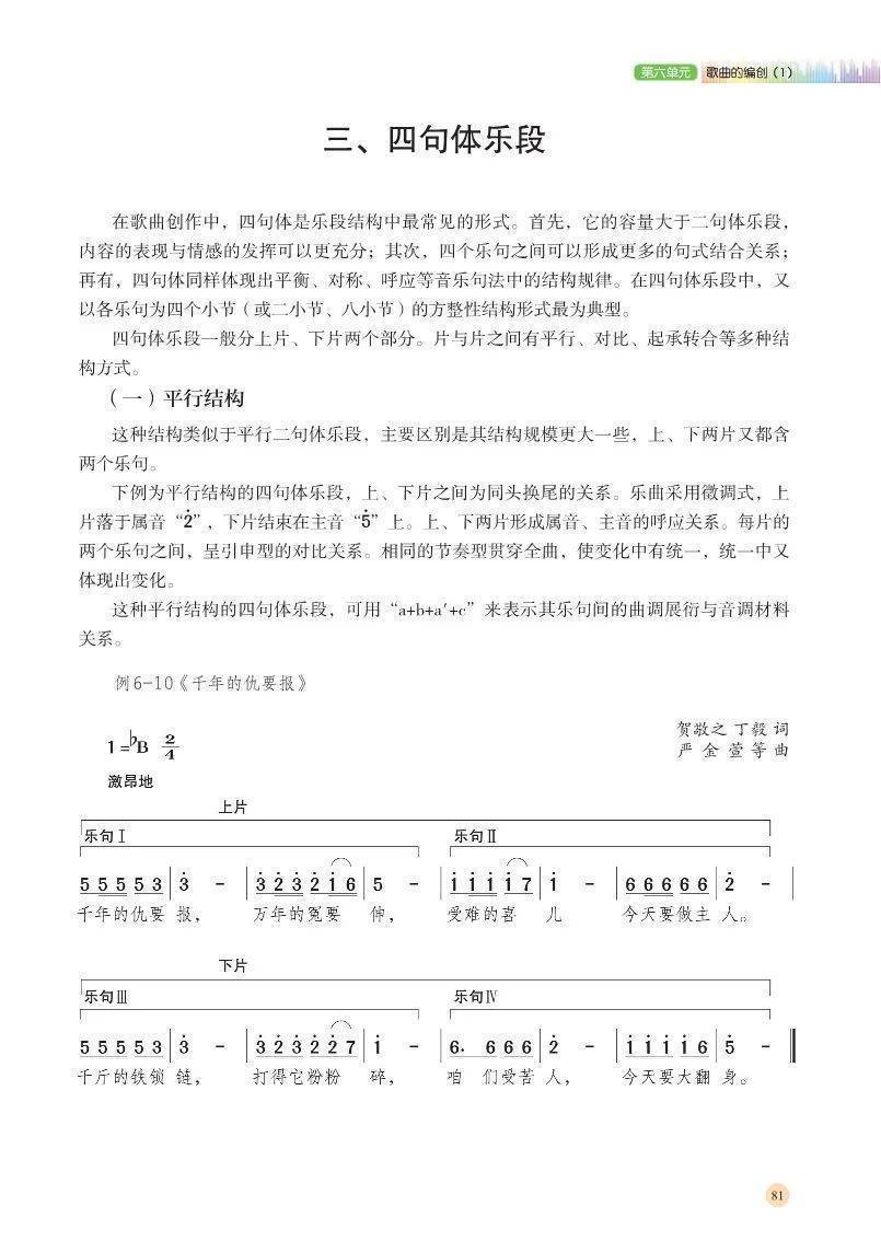 2026湘艺版高中音乐必修4《音乐编创》电子课本就为您介绍到这里,资源来源于网络,仅为学习交流之目的进行分享,其版权均归原出版社及作者所有。