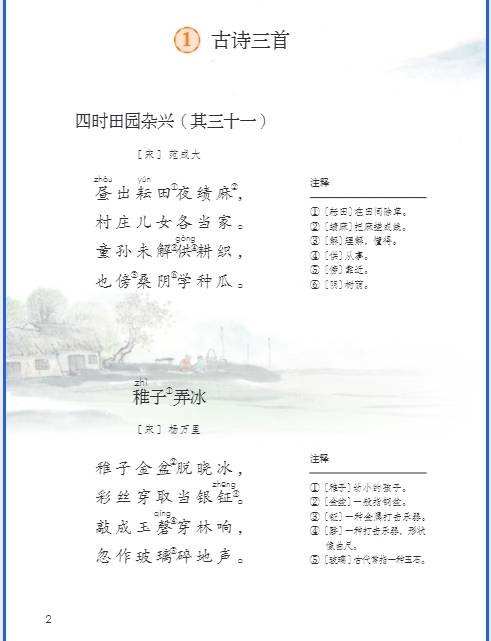 3. 古诗词(如《四时田园杂兴》《稚子弄冰》)