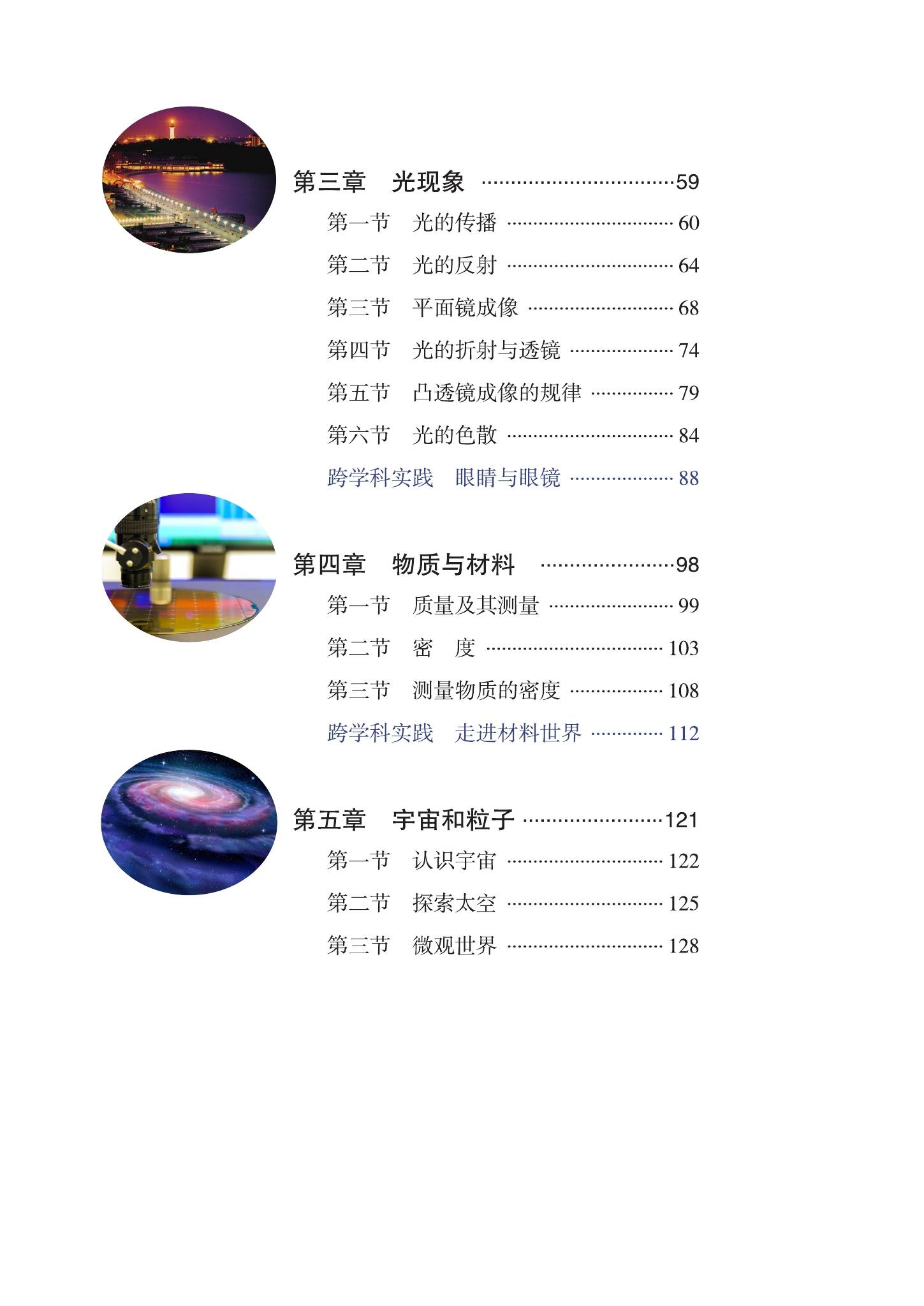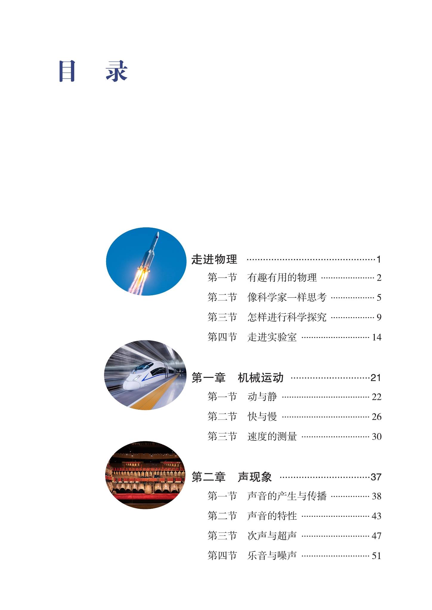 一:2024版最新鲁科版初中物理八年级上册(五四制)电子课本教材目录: