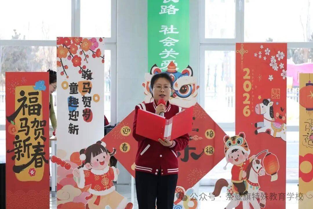 联欢会上,教导主任刘海英深情回顾了学校一年来在特殊教育领域的深耕与收获,向辛勤付出的教职工、全力支持的家长们致以诚挚感谢。新年伊始从往日的功能厅,移步至这开阔的食堂大厅,这绝不仅是地理空间的拓展,更象征着我们愿为孩子们点燃的更为辽阔的未来;承载着社会汇聚于此的、更加厚重的托举与期待。她更以马年为喻,寄语孩子们如小马般勇敢追梦、茁壮成长,愿家校携手共筑特殊儿童的幸福成长之路。