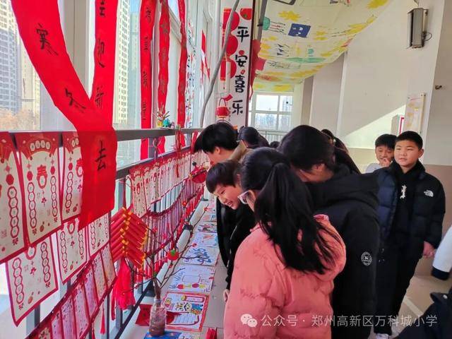一年级“年味小展台”上,充满稚拙童趣的手工作品,展现孩子们对新年最纯真的感知;二年级以“童‘画’新年,童言贺岁”为主题,一幅幅色彩明快的图画与一句句真诚的祝福语相映成趣;三年级同学巧手制作的“纸质小灯笼”与精心绘制的新年贺卡,传递着温暖的光亮与真挚的问候;四年级展区巧妙融合“剪纸与粘土手工”,传统技艺与现代造型思维碰撞出无限创意;五年级以“十二生肖贺新年”为主题,用多种艺术形式演绎生肖文化,妙趣横生;六年级“墨香迎新春·笔韵绘华章——春联书法展”笔墨酣畅,一副副春联与书法作品,彰显着传统文化的深厚底蕴与毕业年级的蓬勃朝气。展览期间,各班级学生在老师带领下有序参观,在交流与欣赏中感受不同年级的艺术特色,体验了一场沉浸式的校园美育之旅。