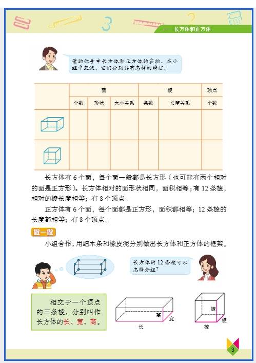 单元 3:长方体和正方体(几何重点 + 实际应用)