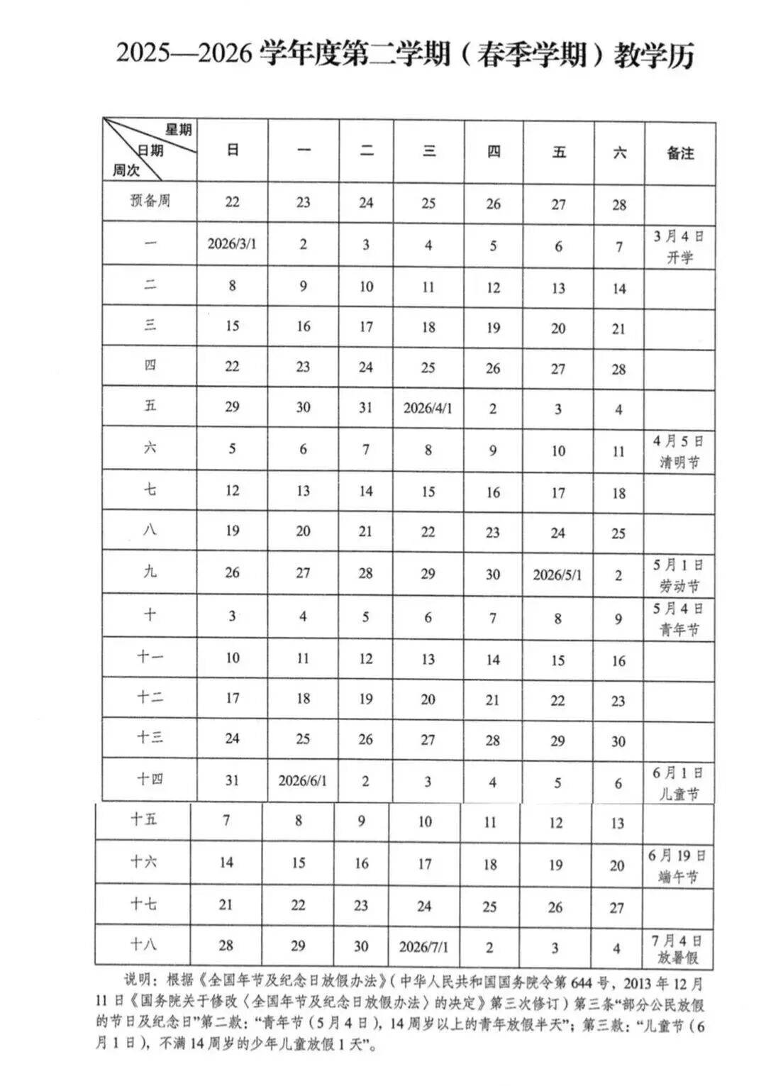 开学:2026年3月2日(星期一)