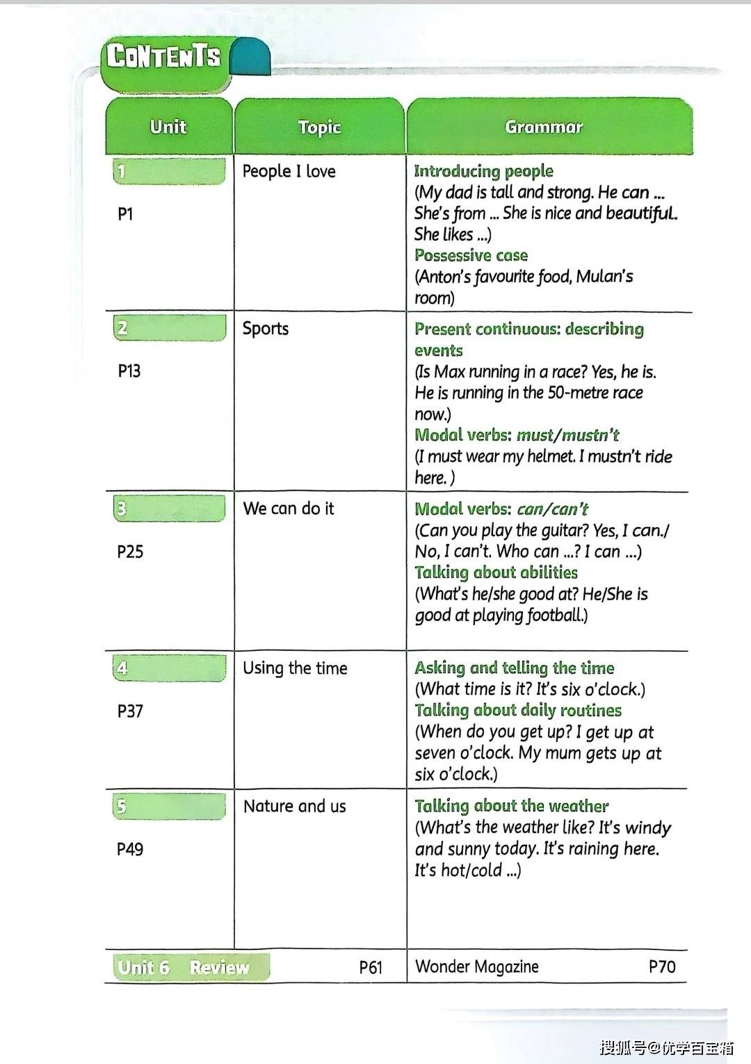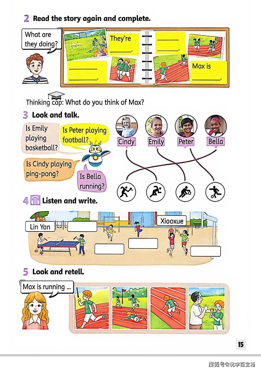 从具体内容看,教材设置了 “People I love”“Sports” 等 5 个主题单元,每个单元对应不同的语法(如现在进行时、情态动词)、词汇(如家庭成员、运动项目)与技能目标。以 “Sports” 单元为例,不仅涵盖运动类词汇与现在进行时的运用,还通过 “Sports Day”“Playing the game” 等课例,结合对话、活动等形式落实语言运用。