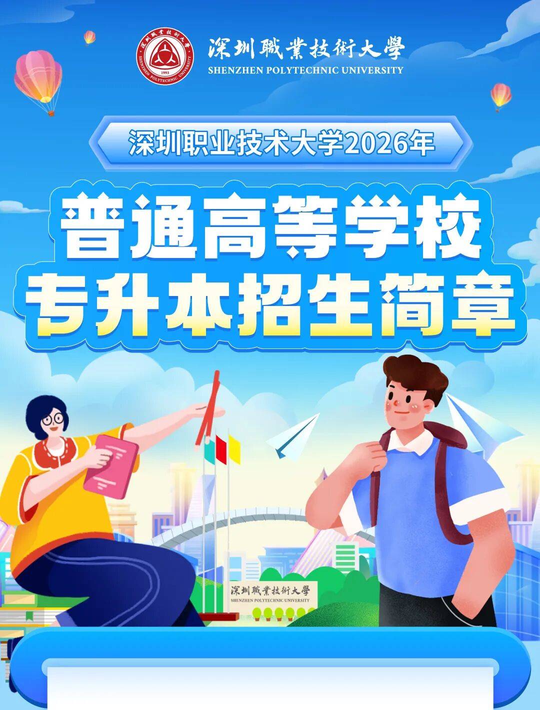 为贯彻落实教育部有关文件精神,按照《广东省2026年普通高等学校专升本招生工作规定》(粤招办普〔2025〕51号)文件要求,现制定深圳职业技术大学2026年普通高等学校专升本招生简章。