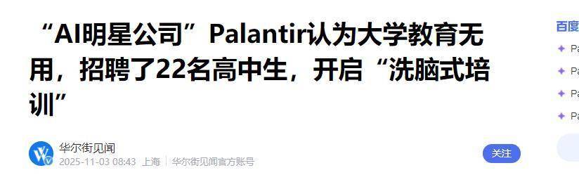 大数据巨头Palantir推出的“精英奖学金计划”,直接给顶尖高中生开高薪,让他们放弃常春藤名校直接入职。