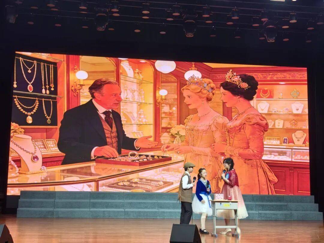 舞台之上,小演员们英语口语发音标准,尽显扎实的语言功底;富有张力的舞台演绎,将每个角色刻画得入木三分;角色之间配合默契,表演节奏紧凑、笑点与燃点兼具,精准还原了这一经典片段,赢得台下阵阵掌声。