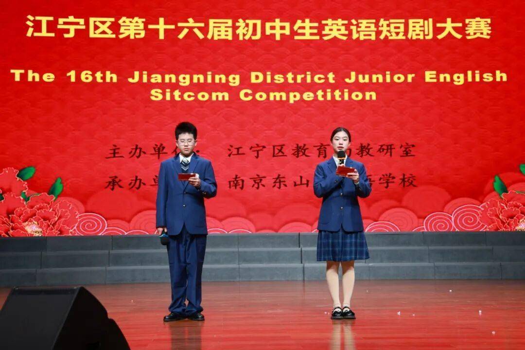 2025年12月30日,江宁区第16届初中生英语短剧大赛在我校举行。来自全区32所初中的参赛队伍,用流利的英语表达与鲜活的舞台演绎,上演了一场场融合经典与创新的视听盛宴,展现了新时代初中生的综合素质与青春风采。我校初二(11)班邱晟恩、初二(10)班杨仕羽同学主持了本次大赛。