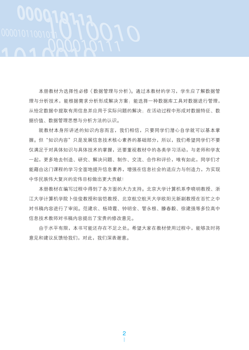 为了帮助高中生自主预习与有效复习,我们整理了2026浙教版高中信息技术选择性必修3《数据管理与分析》电子课本,教材突出跨学科思维与实际应用能力的培养,下面以图片的形式呈现给大家,希望可以帮助到大家。