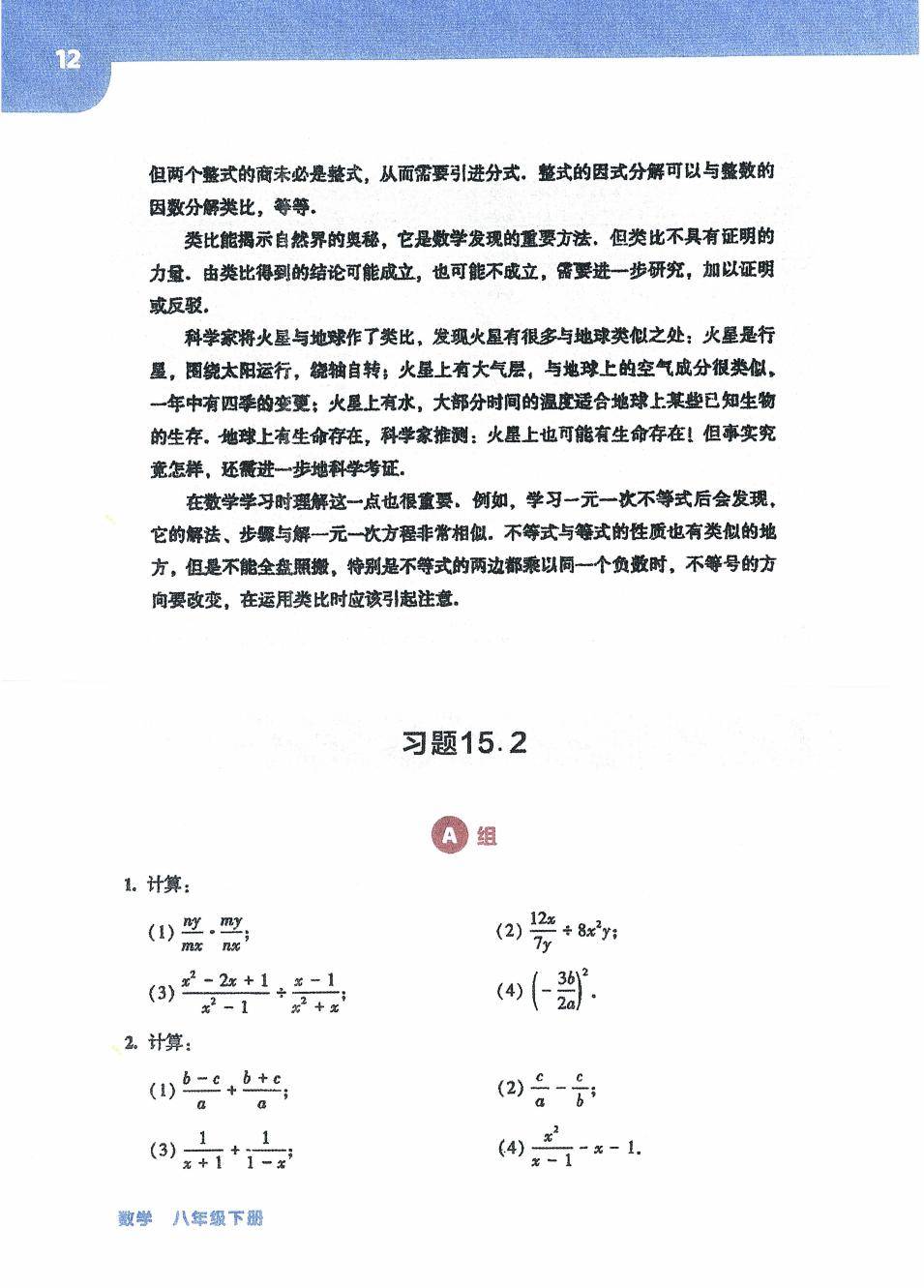 华师大版八年级数学下册电子课本图片版在线阅读