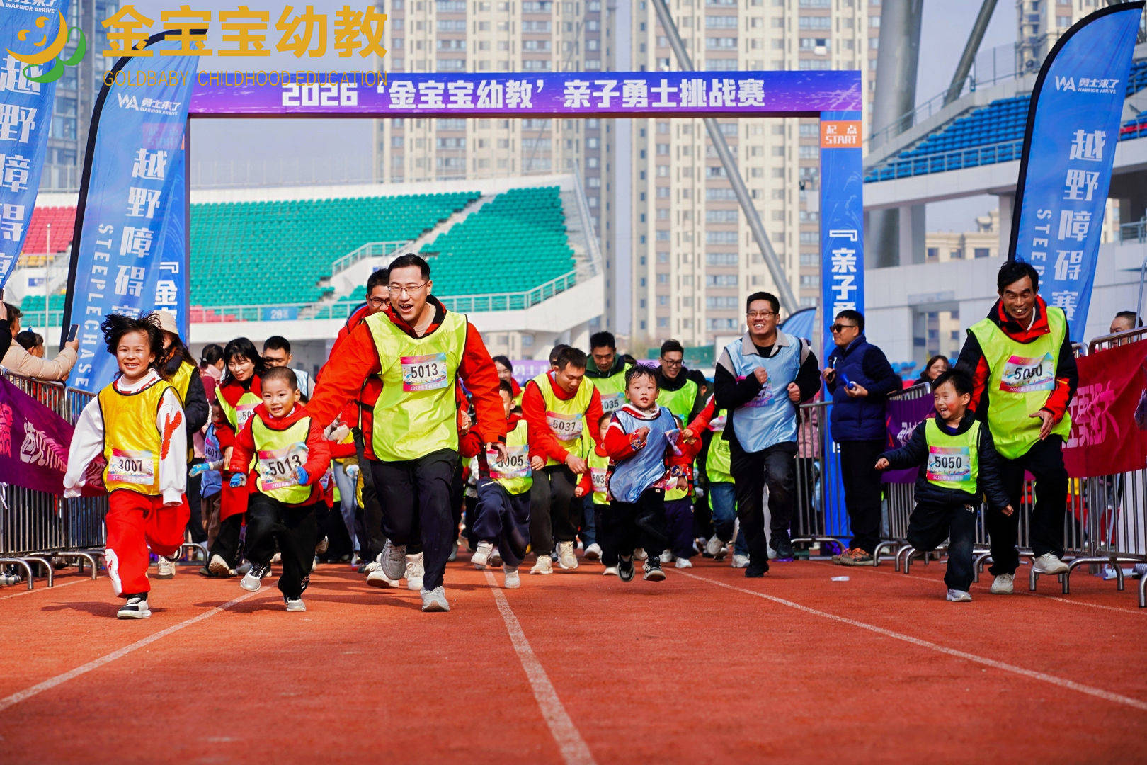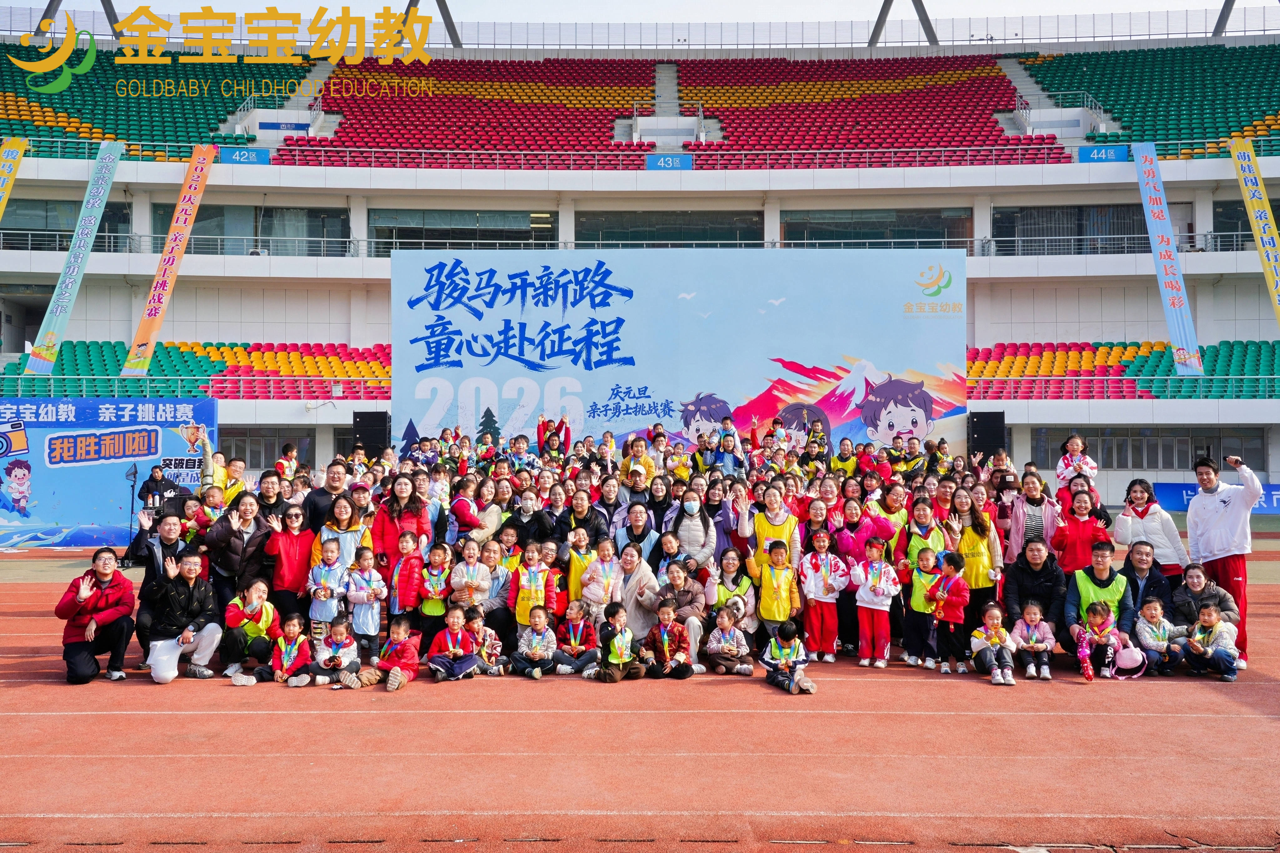 岁末年初,华章日新。12月30日,江宁体育中心化作一片欢乐与勇气的海洋,由南京金箔控股集团金宝宝幼教主办的“2026庆元旦亲子勇士挑战赛”在此隆重举行。金陵金箔集团总裁葛才金,金宝商业集团总裁王东宁、总裁助理章娇等领导,以及金宝宝幼教负责人佘静、财务总管陶茜茜、各园园长和家委会主席悉数到场。
