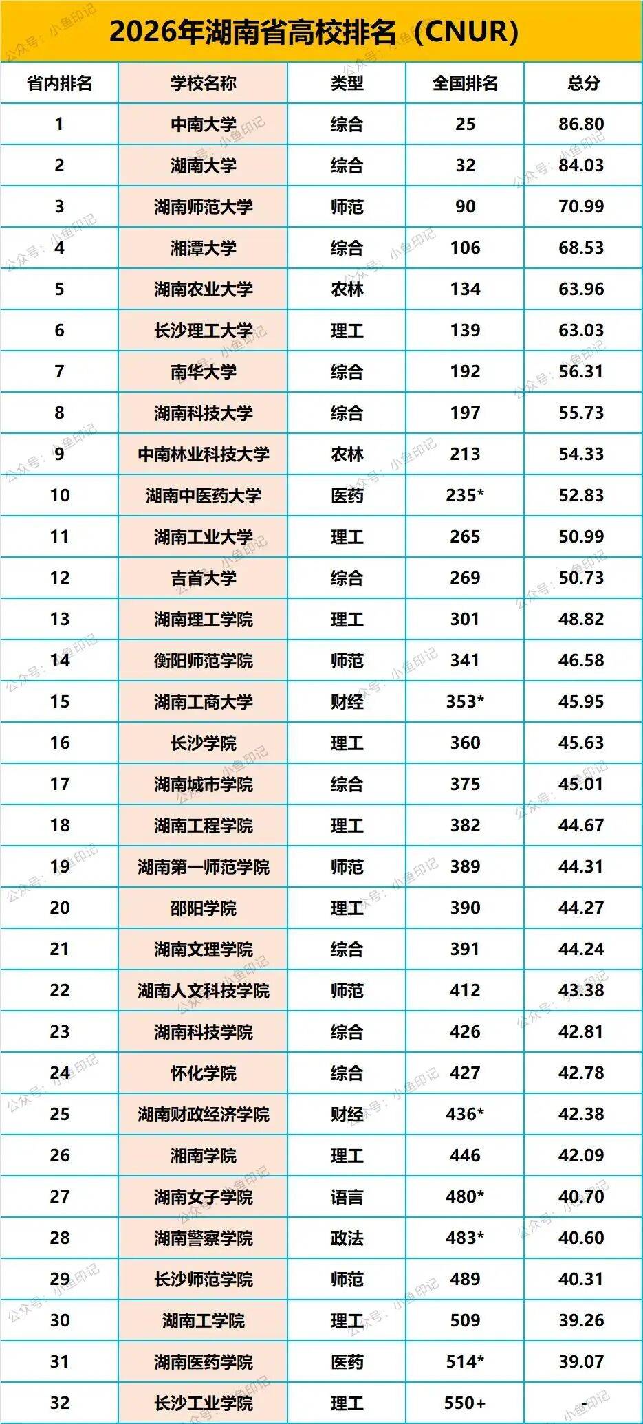 2026年湖南省高校最新排名