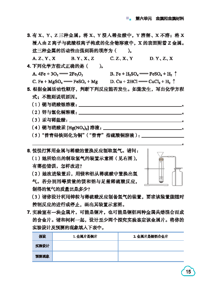 2026春科学粤教版九年级化学下册第三单元以“酸和碱”为核心主题,作为初中化学酸碱盐知识体系的入门关键,构建了“定义认知—性质探究—实验操作—实际应用”的完整学习框架,是中考化学的核心考点模块。核心知识点集中在五大模块:一是酸与碱的核心定义,明确酸是在水溶液中解离出的阳离子全部是H⁺的化合物(如盐酸、硫酸),碱是解离出的阴离子全部是OH⁻的化合物(如氢氧化钠、氢氧化钙),这是理解两类物质共性的基础。二是酸与碱的通性,酸的共性源于H⁺,能使紫色石蕊溶液变红,可与活泼金属、金属氧化物、碱、某些盐反应;碱的共性源于OH⁻,能使紫色石蕊溶液变蓝、无色酚酞溶液变红,可与非金属氧化物、酸、某些盐反应,需熟记盐酸除铁锈、氢氧化钙检验二氧化碳等典型反应方程式及现象。三是常见酸与碱的特性,盐酸具有挥发性(打开瓶盖有白雾),浓硫酸具有吸水性、脱水性和强腐蚀性,稀释时必须“酸入水”并搅拌;氢氧化钠俗称烧碱,易潮解且腐蚀性强,氢氧化钙俗称熟石灰,微溶于水,可用于改良酸性土壤,这些特性直接决定其用途与操作规范。四是中和反应及其应用,理解中和反应本质是H⁺与OH⁻结合生成水,掌握其在改良酸性土壤、处理工业废水、治疗胃酸过多等场景的应用,同时明确中和反应放热的实验现象。五是溶液酸碱性与pH,掌握pH范围(0-14)对应的酸碱性,学会用pH试纸正确测定溶液pH(不能直接浸入待测液),理解pH在农业生产、日常护理等领域的应用价值。本单元实验探究密集,重点渗透控制变量法,同时融入粤地农业生产中化肥使用、工业废水处理等本地场景案例,强化知识的实践应用导向。
