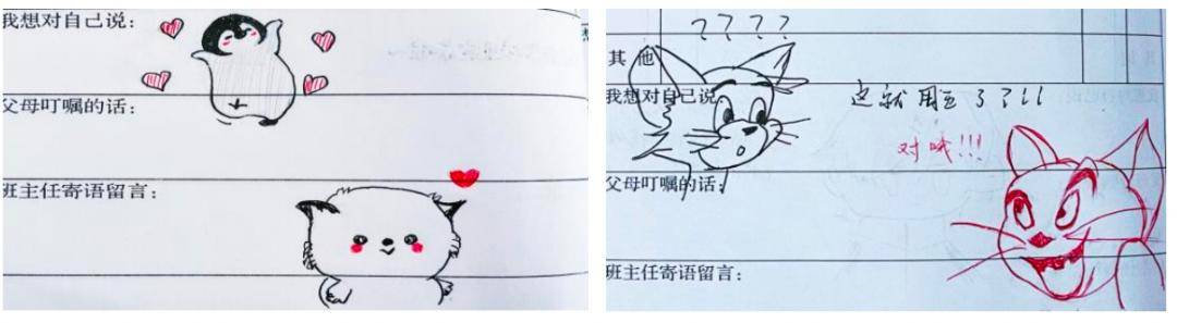 家校联系本上学生用涂鸦留言,郑英老师用涂鸦回复 受访者供图