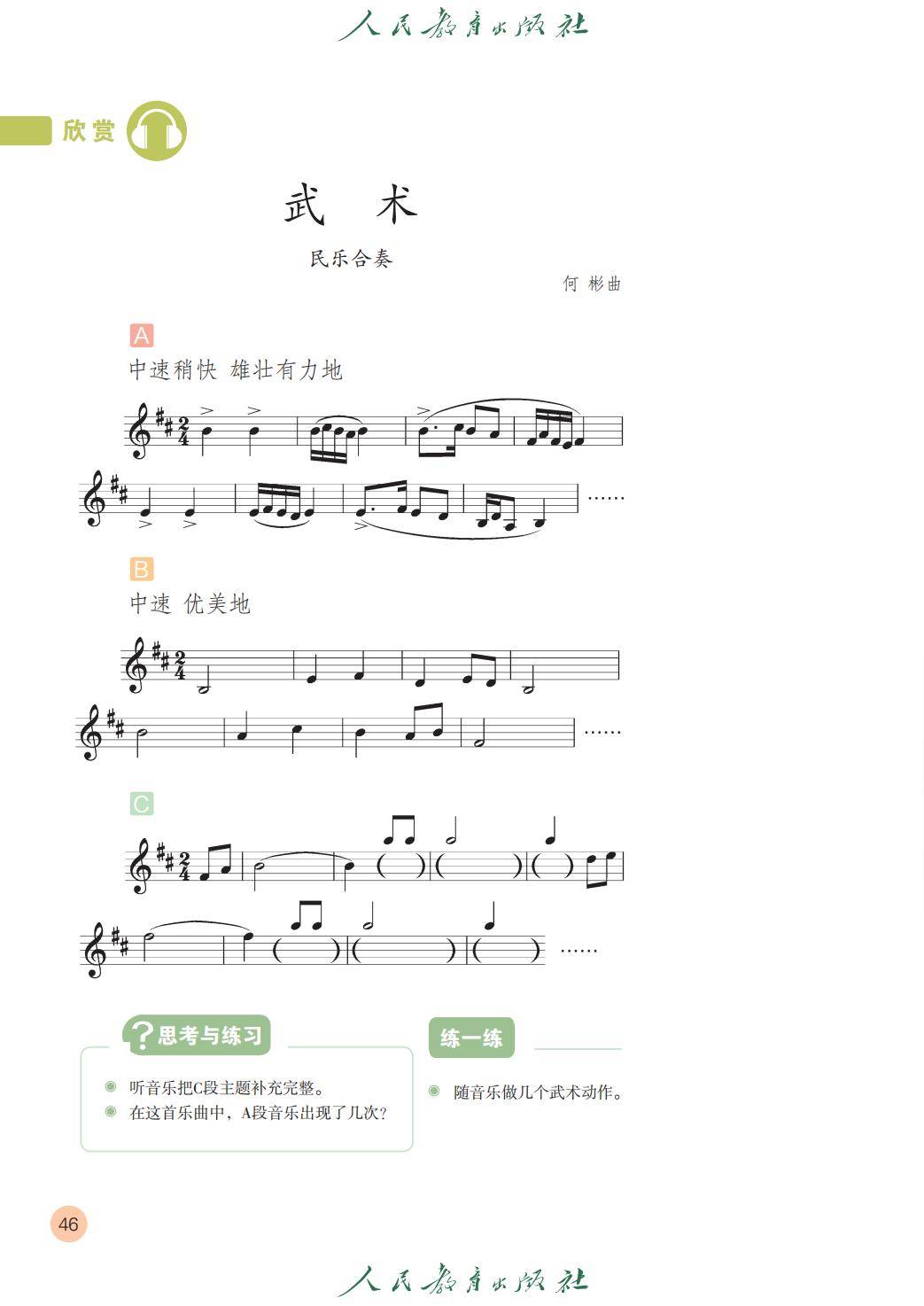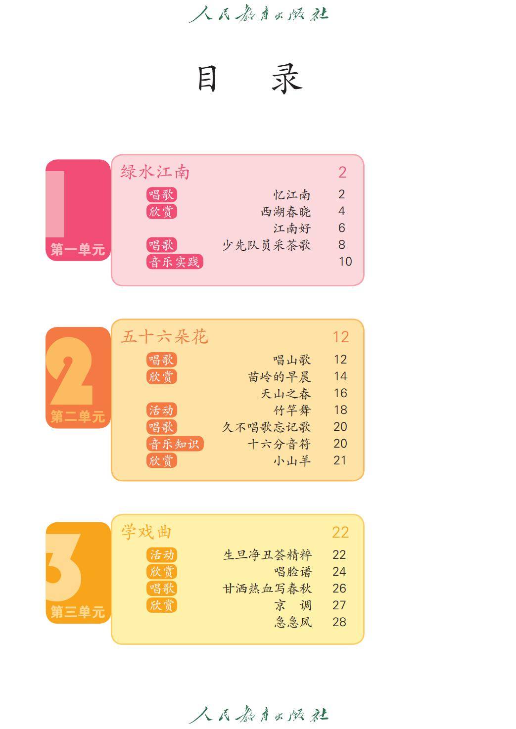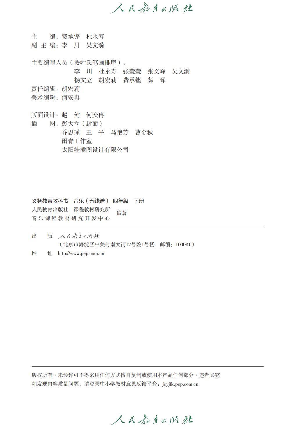 2026春人教版四年级音乐下册电子课本(高清版五线谱新教材)就为您介绍到这里,资源来源于网络,仅为学习交流之目的进行分享,其版权均归原出版社及作者所有。
