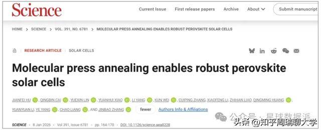 光伏技术快速迭代的今天,福建农林大学数字经济学院绿色光电器件与储能电池团队于北京时间2026年1月9日迎来里程碑式突破。青年教师蔡庆斌作为共同第一作者在国际顶级学术期刊《科学》(Science)发表题为《分子压印退火实现高稳定性钙钛矿太阳能电池》的研究成果,这项研究不仅揭示了钙钛矿材料热退火降解的动力学机制,更开创性地提出固态分子压印退火(MPA)策略,将小面积器件效率推升至26.6%,并在极端环境测试中实现超1600小时稳定性保持率98.6%的惊人表现。该成果标志着中国在钙钛矿光伏领域已跻身国际最前沿,为全球清洁能源技术发展注入强劲动能。