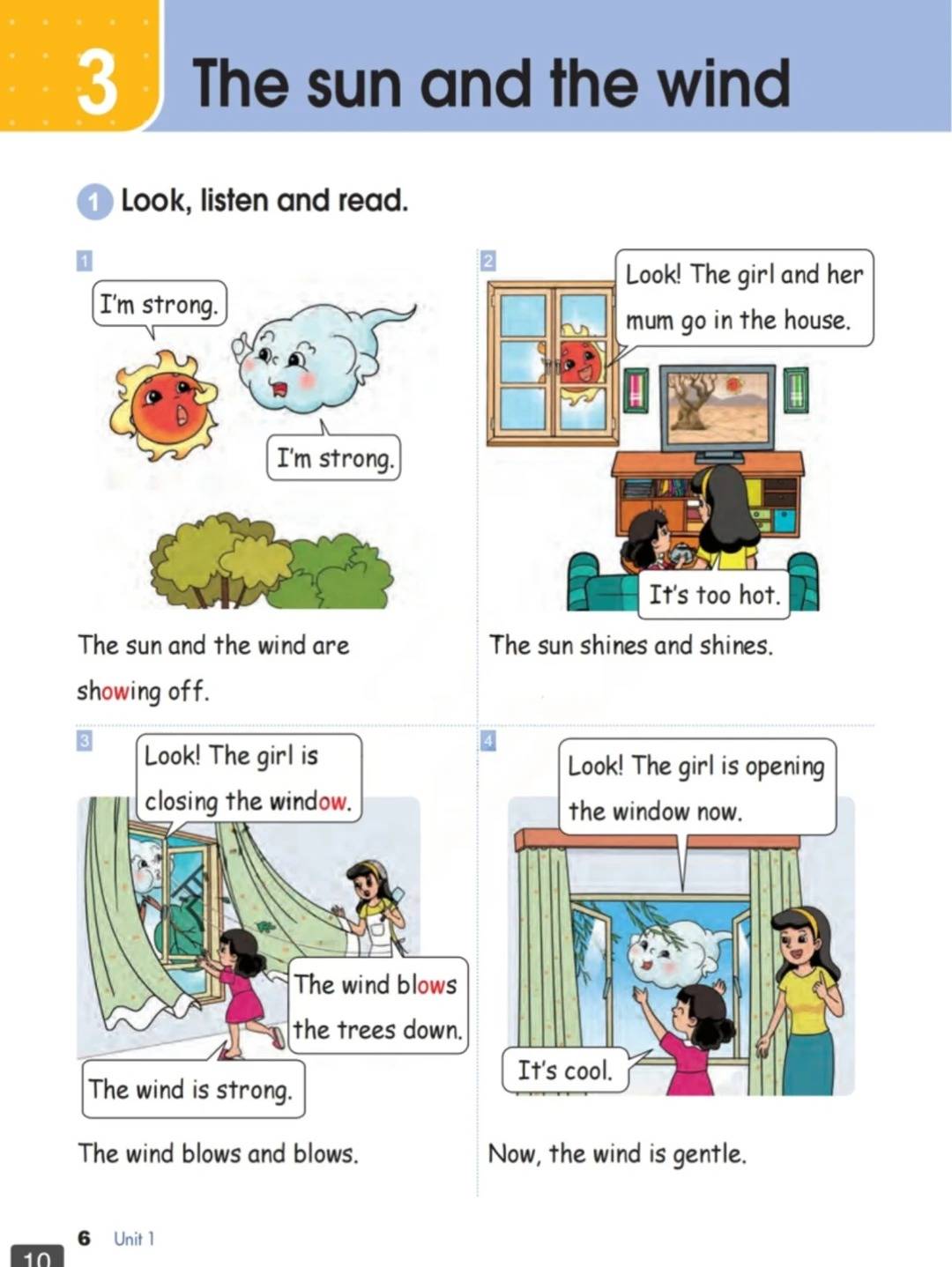 教材的活动设计遵循 “听说先行、读写跟进” 的规律,每个单元都包含 “Look, listen and say”“Look, listen and read” 等环节,通过听、看、说、读等多元形式调动感官。配套的小故事不仅能提升阅读兴趣,还能传递价值观,比如《The sun and the wind》让孩子体会 “温和比强势更有力量” 的道理,实现语言学习与品格培养的结合。