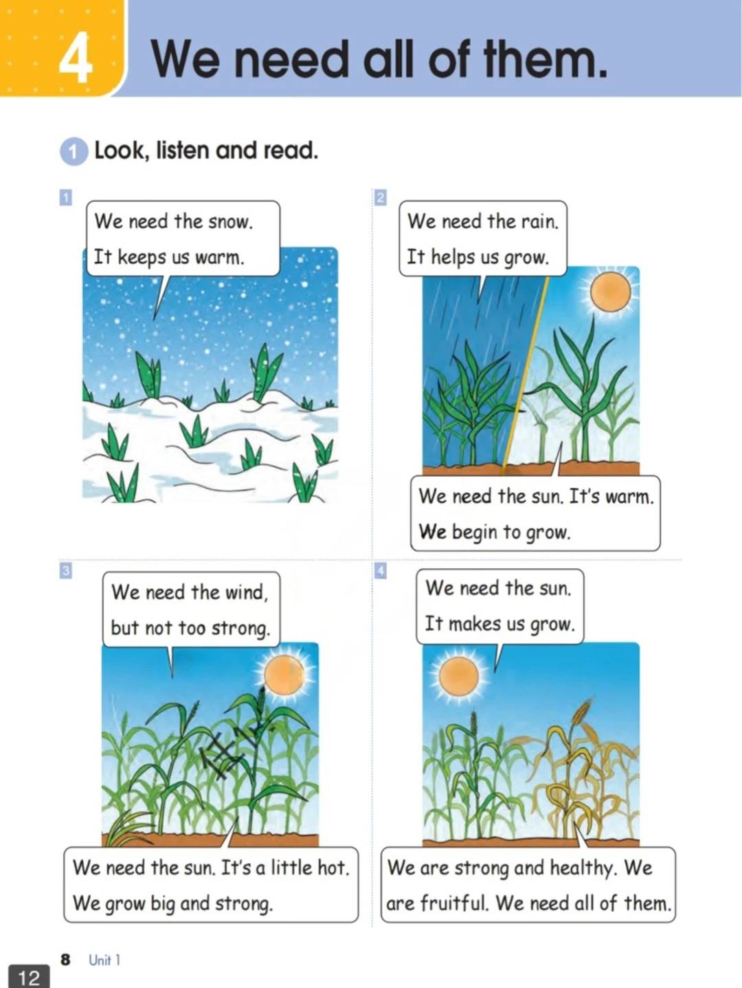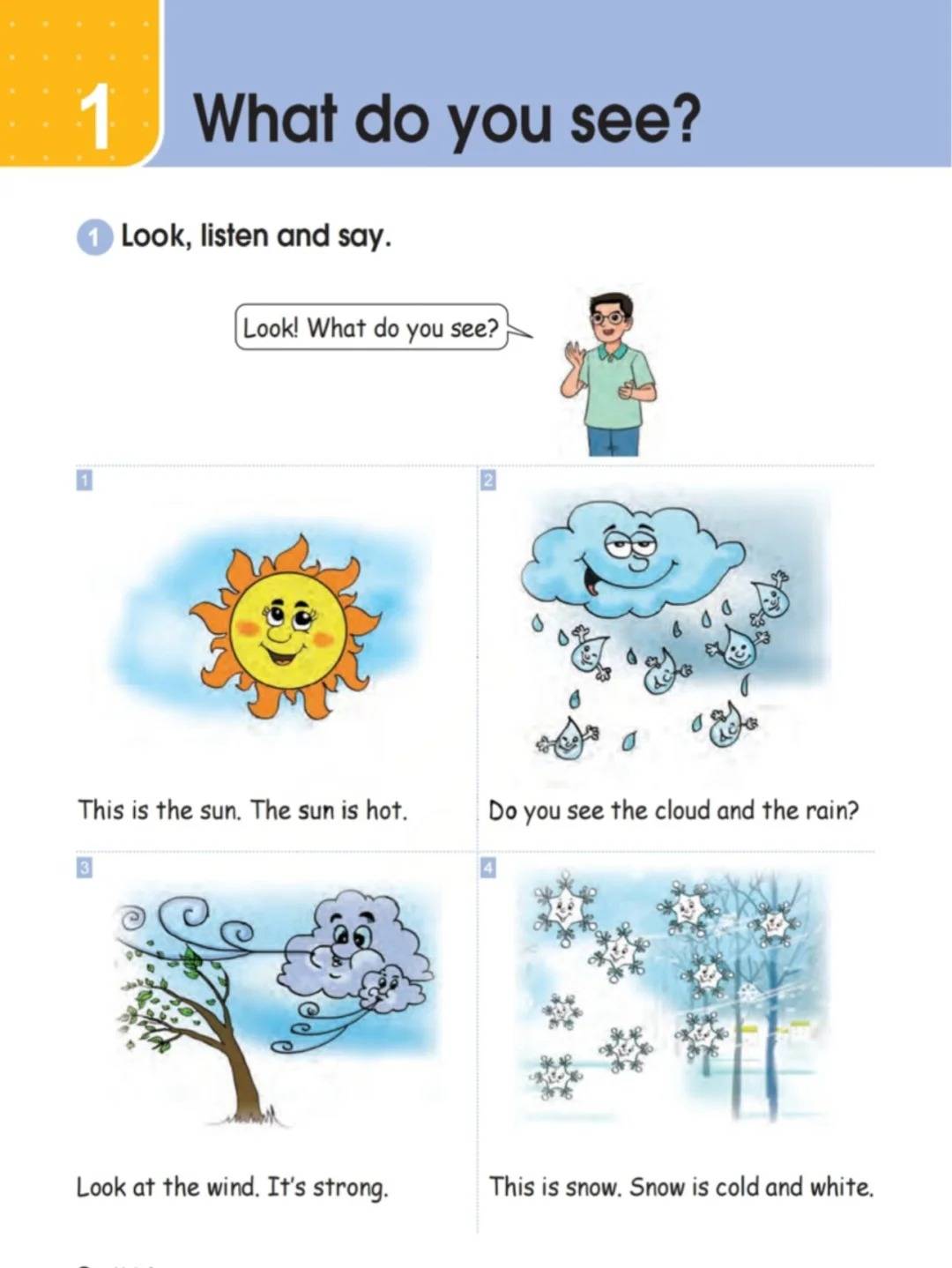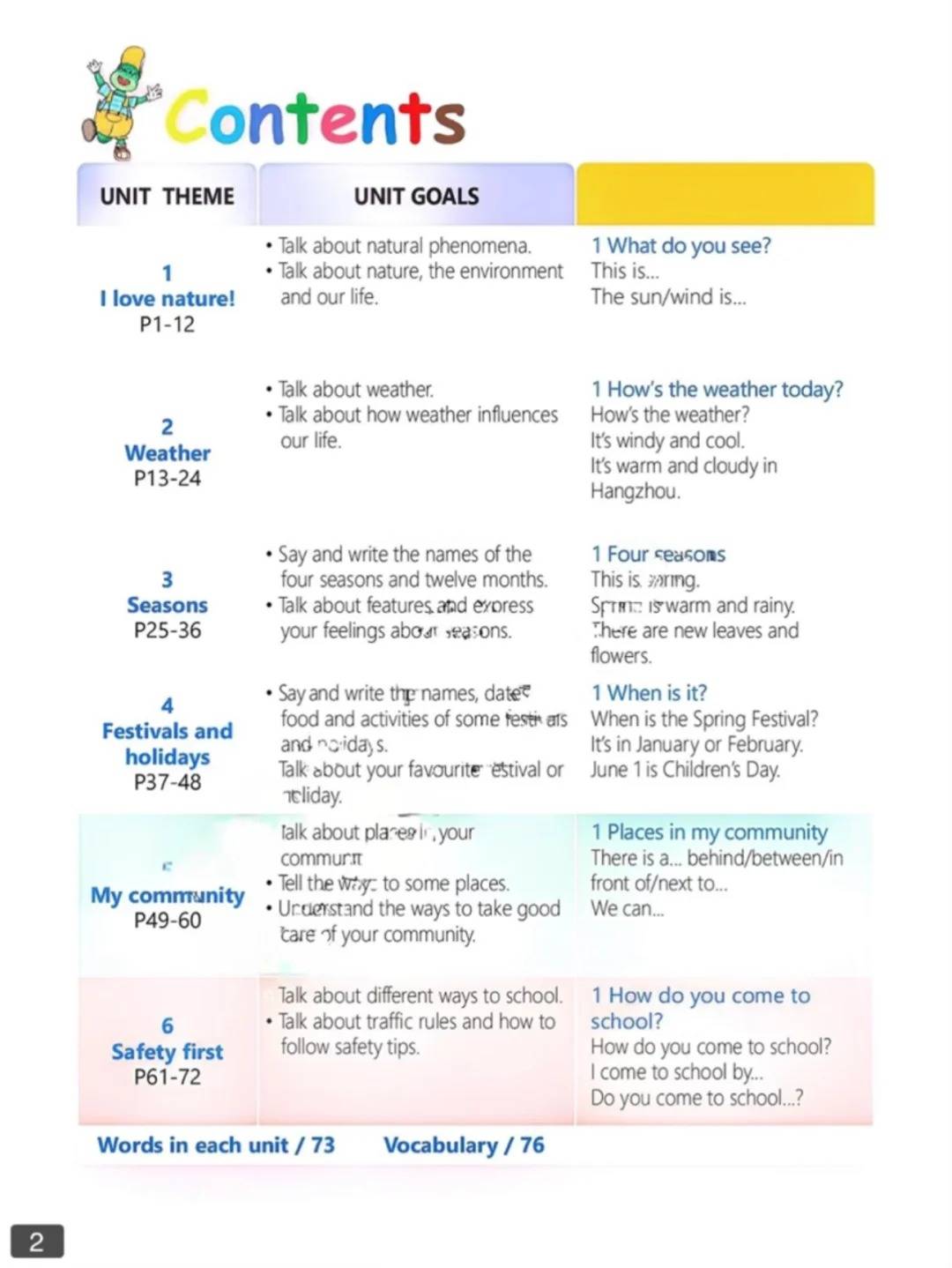 这套教材的单元主题围绕孩子的日常世界展开:从《I love nature!》认识自然现象,到《Weather》谈论天气对生活的影响,再到《Seasons》《Festivals and holidays》探索季节与节日,每个主题都能让孩子在熟悉的场景中学习语言。开篇单元以 “太阳、风、雨、雪” 等自然现象为切入点,用《The rainbow》《The sun and the wind》等小故事,让孩子在生动的情节中掌握 “This is the sun.”“It's strong.” 等基础表达,同时理解自然与生活的关联。
