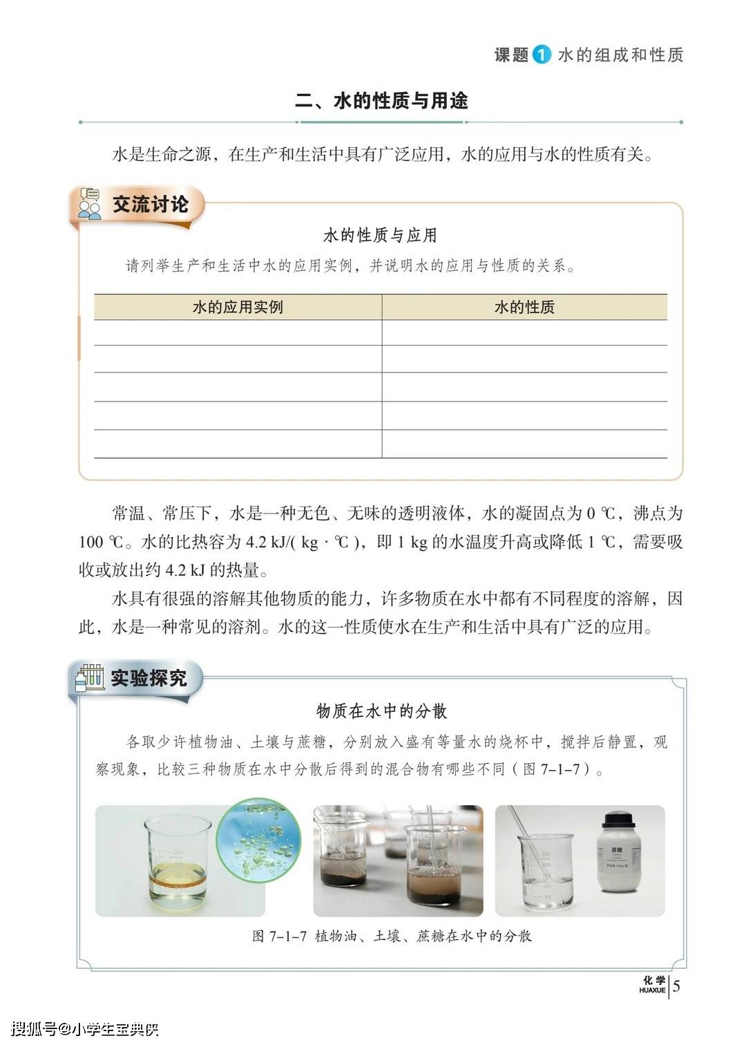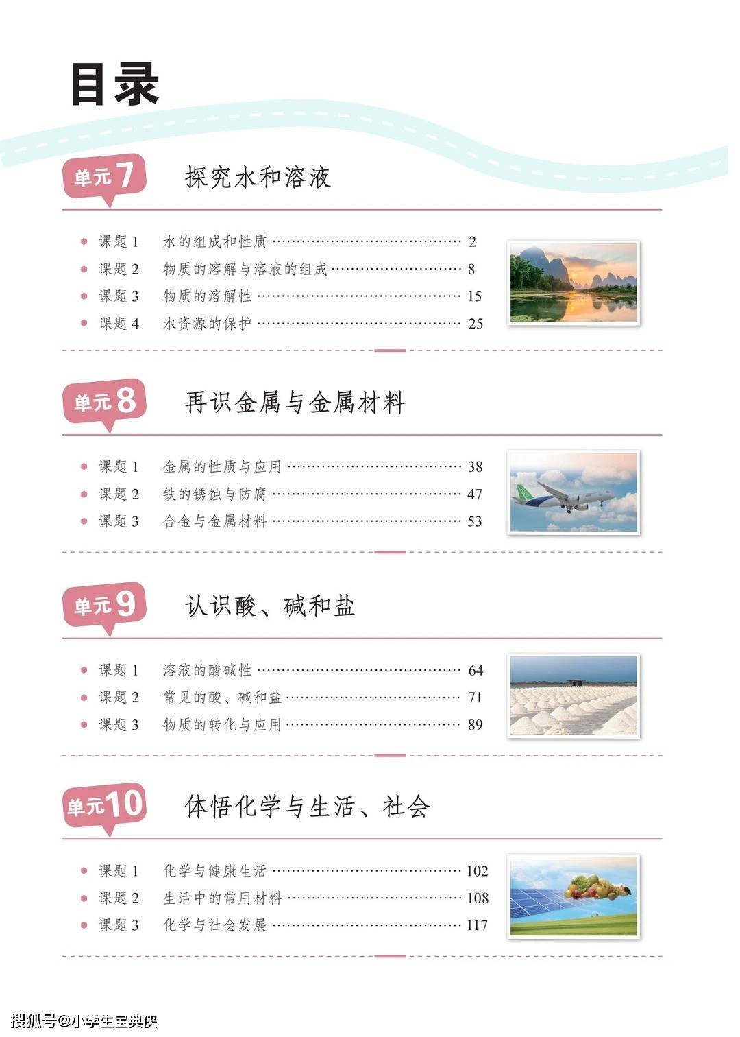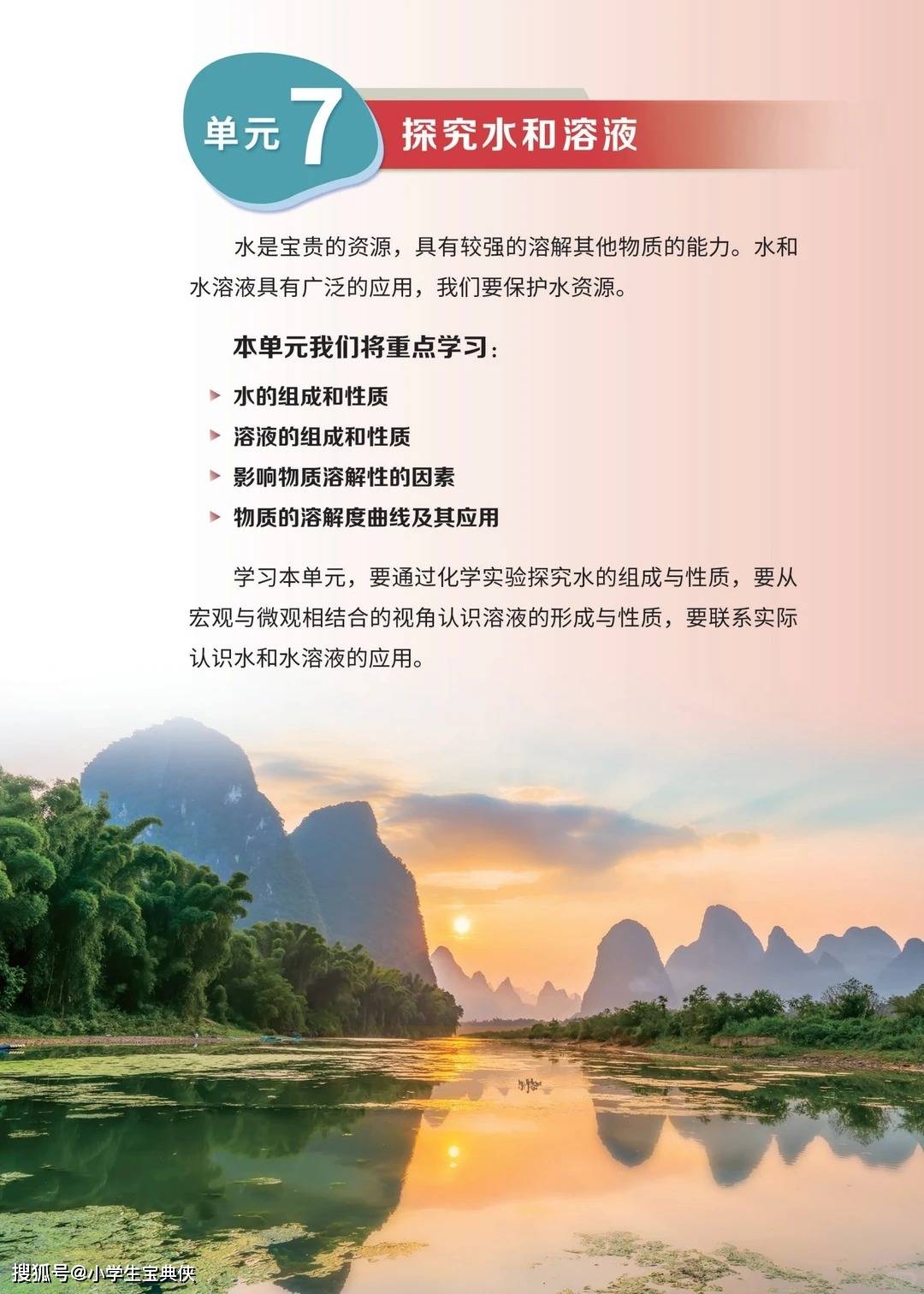 • 单元 7《探究水和溶液》 作为下册开篇,从水的组成与性质切入,通过电解水实验直观呈现 “水由氢氧元素组成” 的核心结论,延伸到溶液的形成、饱和与不饱和溶液的转化、物质溶解性影响因素等知识点。同时,结合水资源短缺与污染问题,增设 “水的净化”“节水方案设计” 等内容,让学生在理解化学原理的同时,树立环保意识,体会化学与生态保护的关联。