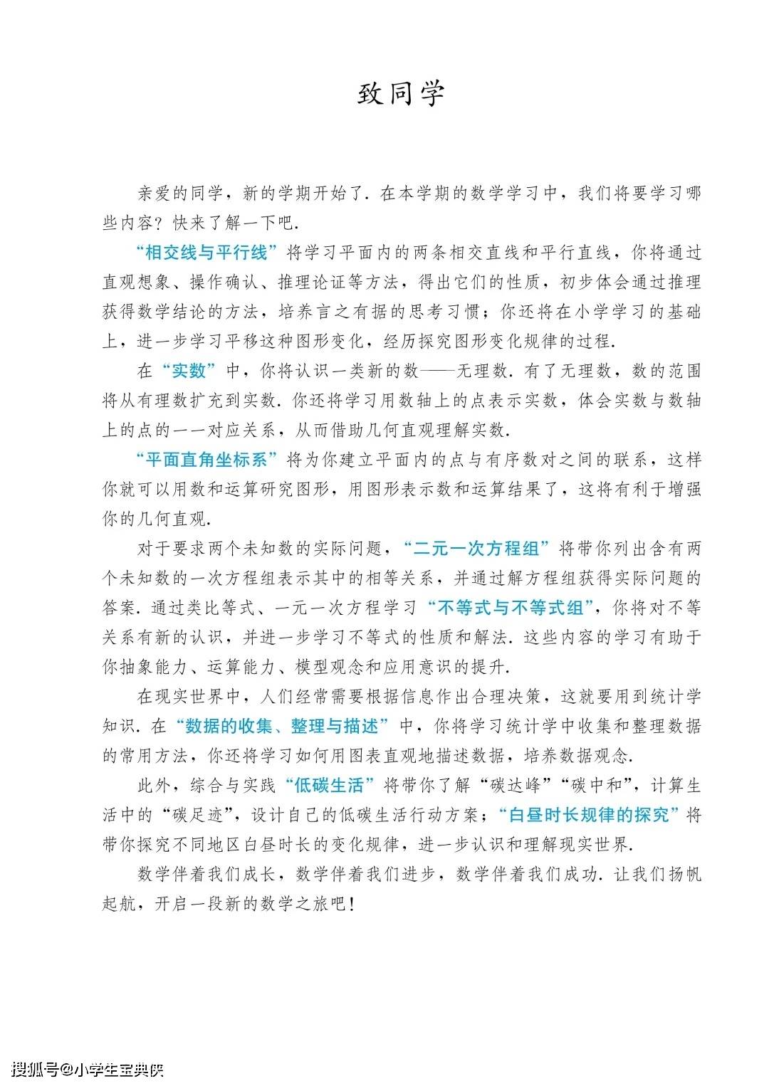 今天为大家分享:人教版七年级下册数学教材,以 “几何直观 + 代数建模” 为核心,通过 “相交线与平行线 — 实数 — 平面直角坐标系 — 二元一次方程组 — 不等式与不等式组 — 数据的收集、整理与描述” 的递进结构,为学生搭建了从直观几何到抽象代数的完整知识体系,是七年级学生深化数学认知、培养核心素养的核心载体。