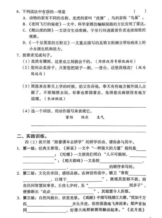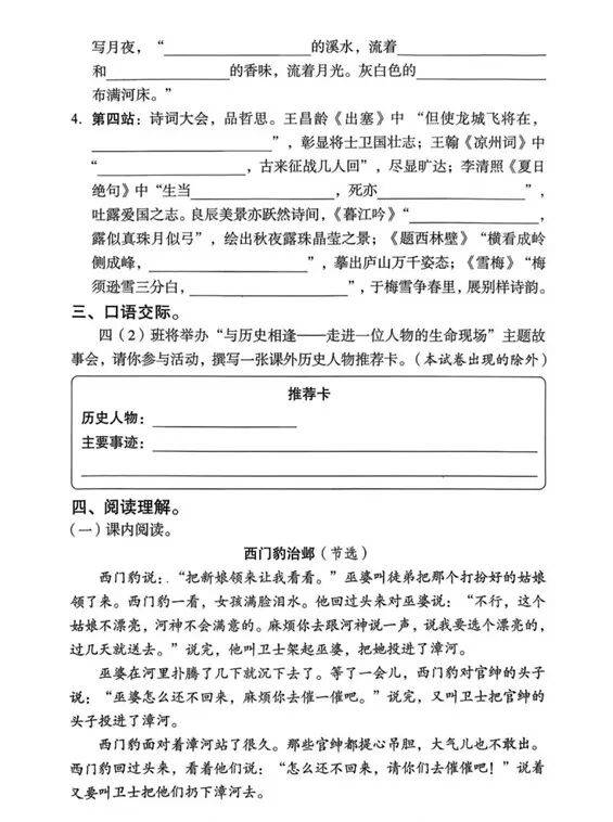 四年级语文上册:今年的期末真题,重在基础和积累,参考一下