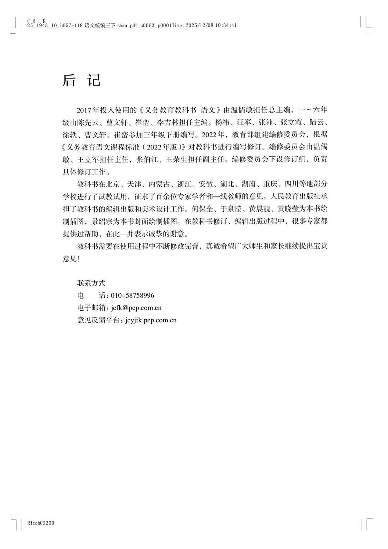 2026年人教版三年级语文下册电子课本(3下新教材高清版) 就为您介绍到这里,资源来源于网络,仅为学习交流之目的进行分享,其版权均归原出版社及作者所有。