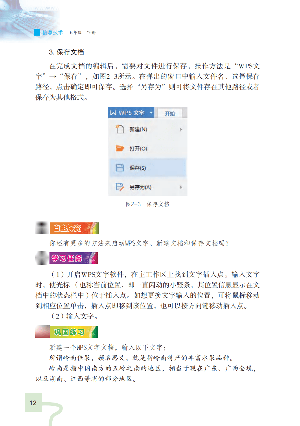 粤教版信息技术七年级下册电子课本图片版在线阅读