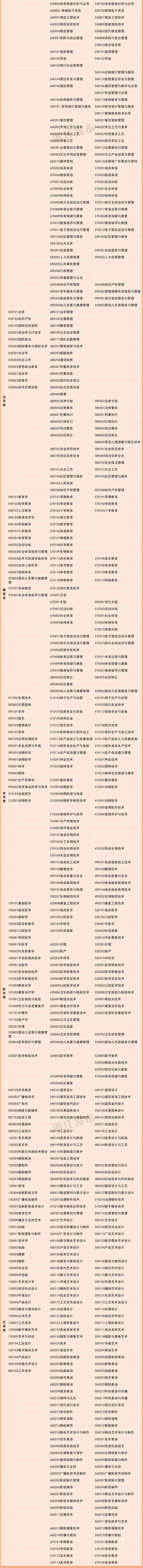免试专升本分文史、理工、经管、法学、教育、农学、医学、艺术8个类别,按专业对口原则实施招生。