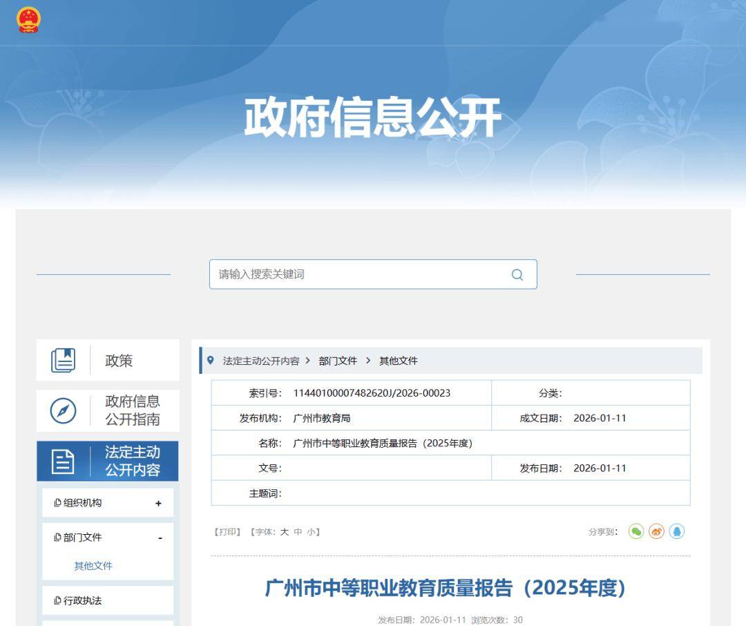 1月11日,广州市教育局发布《广州市中等职业教育质量报告(2025年度)》,其中在“面临挑战与改革举措”方面提到: