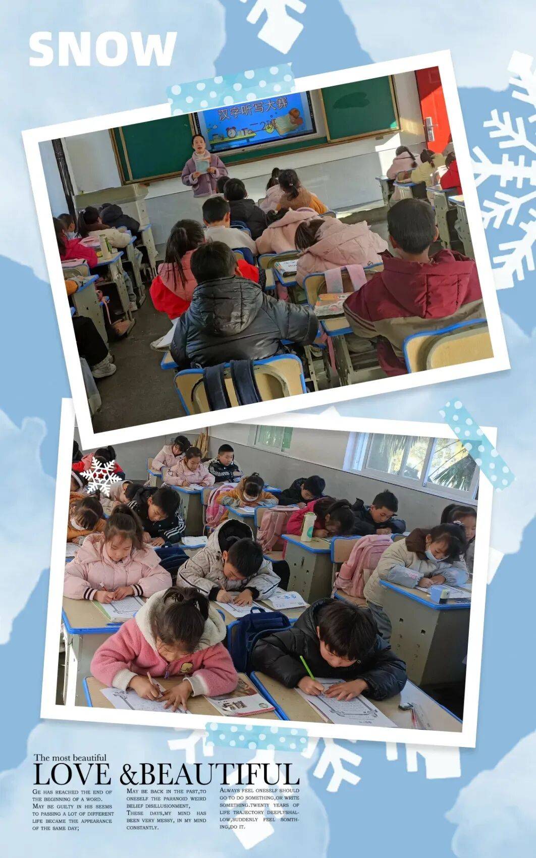 赛后,老师从书写规范度、正确率、卷面整洁度三方面评选出"听写小能手""书写小标兵"“默写小能手”。优秀答卷在校园公示栏展示。
