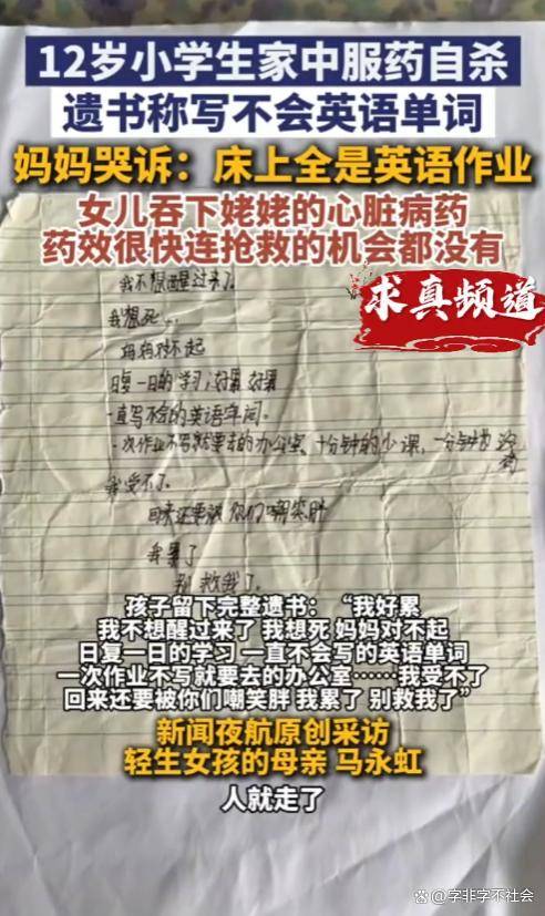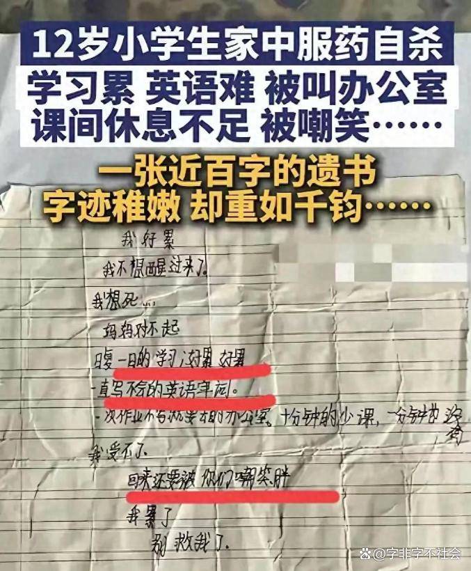 12 岁女孩的遗书里,“学不会的英语单词” 五个字,像一根刺扎进了无数家长心里。江苏这位小姑娘服药自杀后,妈妈在她床上看到堆成山的英语作业,哭到崩溃:“要是没有英语作业,我女儿就不会走了。”