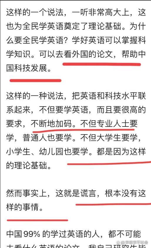 先说说项立刚的核心观点,其实特直白:中国 99% 学过英语的人,这辈子都不会碰英文论文,就算是搞科技工作的,也未必需要看。他说自己在信息领域摸爬滚打这么多年,没看过一篇英文论文,照样不耽误获取信息。在他看来,大部分人学英语就是 “无用功”,可偏偏要被要求达到很高的水平,纯粹是耗费年轻人的精力。