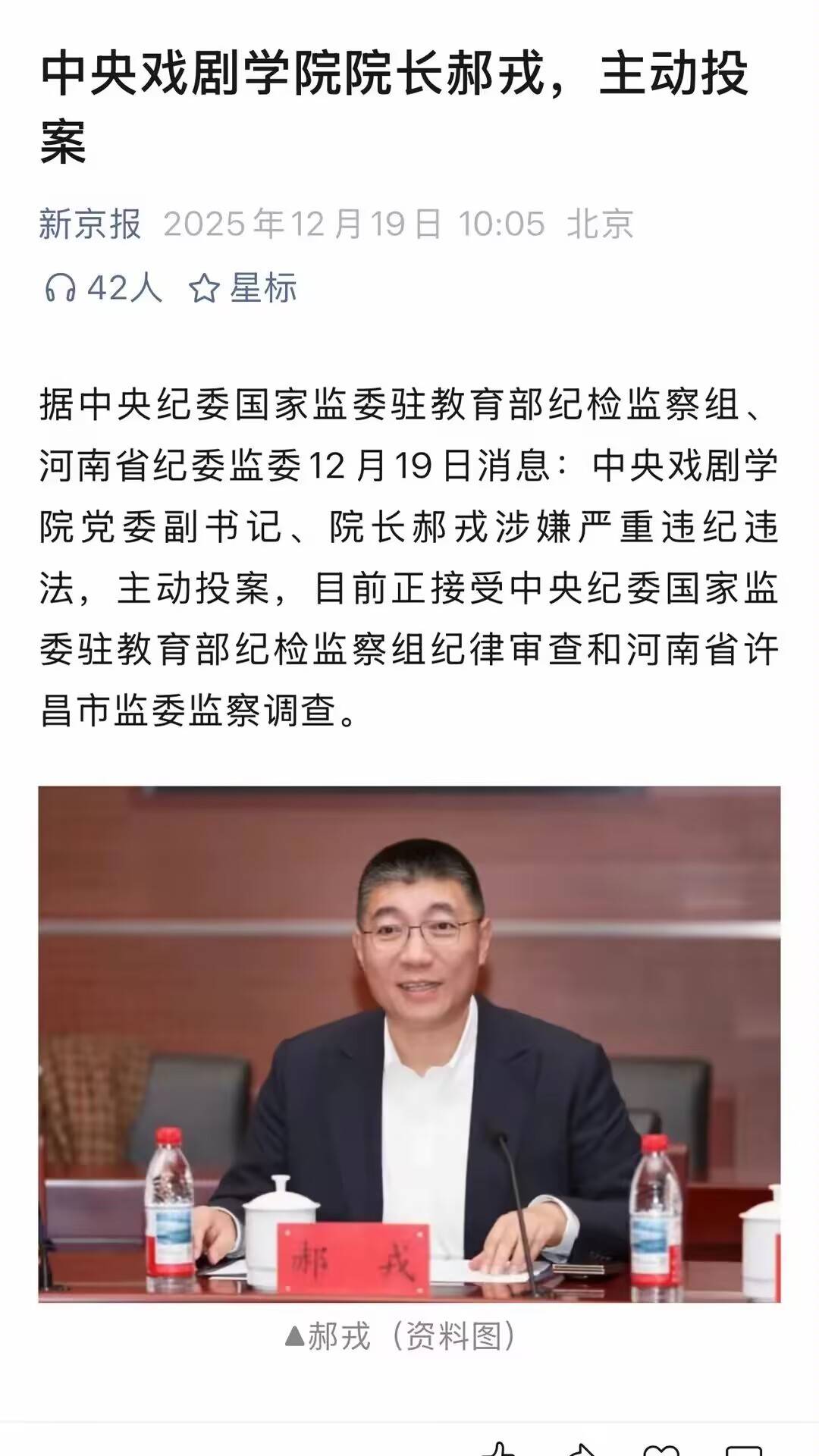 这瓜也太大了!中央戏剧学院院长郝戎主动投案,消息一出直接霸屏热搜。
